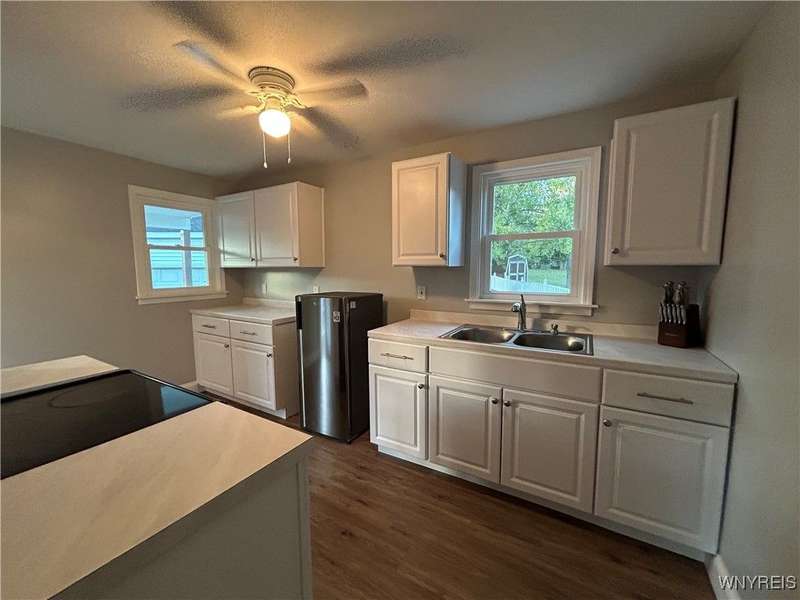 Welcome to this updated Cape Cod home that offers a first floor bedroom and full bathroom, making it a great fit for all lifestyles. Major recent updates in 2025 include white kitchen cabinets, counters and vinyl floor, full bathroom, eight Pella windows, furnace, hot water tank, sump pump and roof. The interior is freshly painted. Generous living room/dining room combination. The second level has bedroom/huge area with great potential for expanded living space or bathroom. The property includes an oversized two car detached garage (built in 1988) offering plenty of space for vehicles, tools, storage or a workshop setup. Private deep back yard. Don't miss your opportunity! Showings begin at Open House on Saturday, 10/4 from 1-3 pm and after. Offers due on Wednesday, 10/8 by 5 pm.