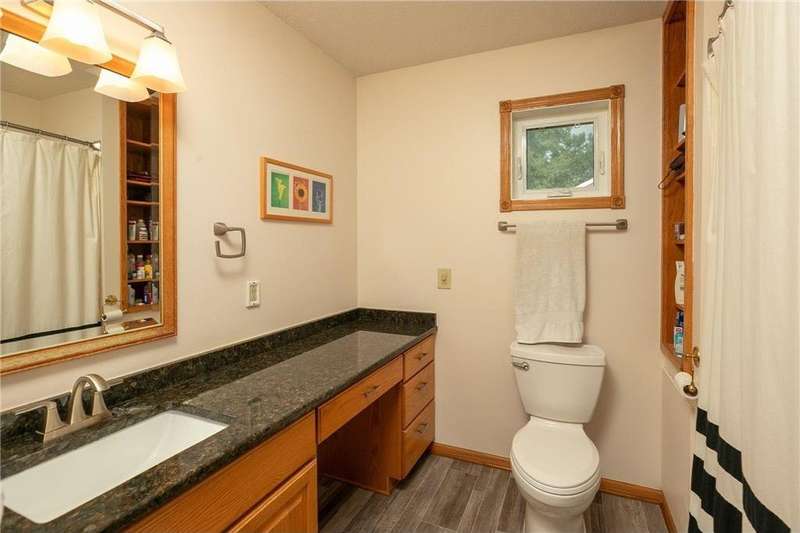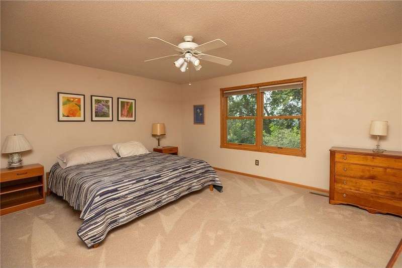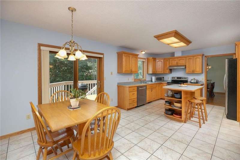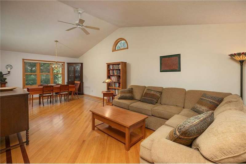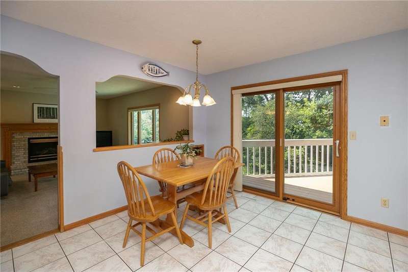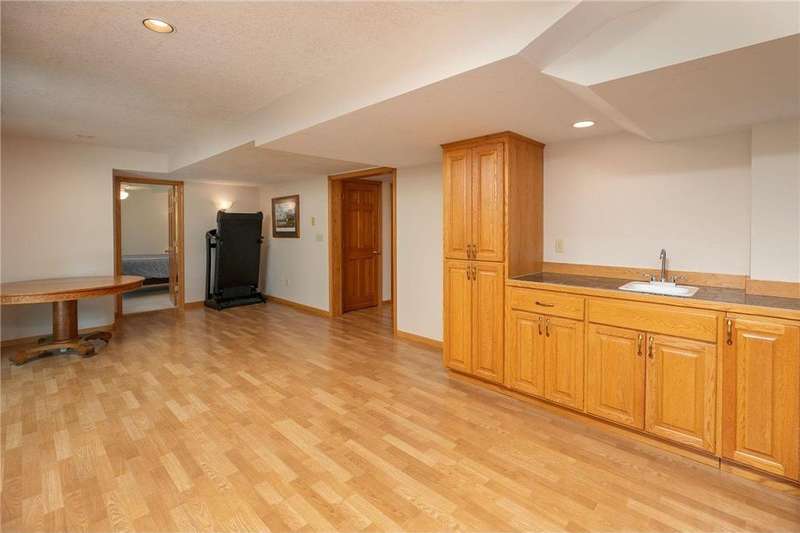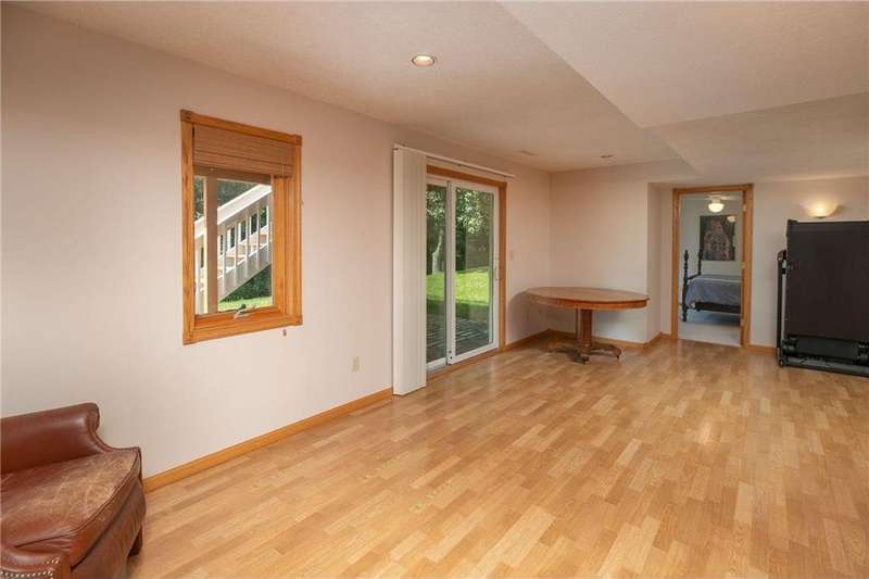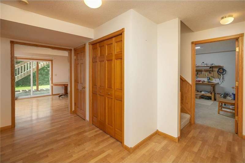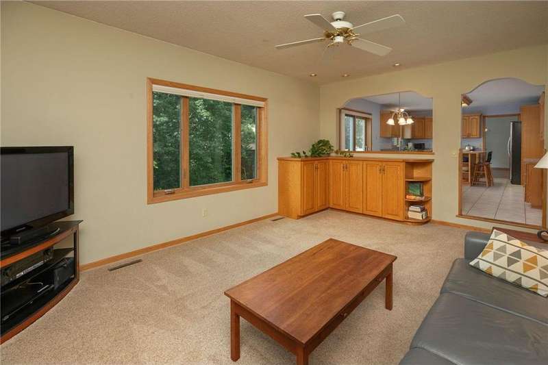 Enjoy wooded views from your deck in this spacious walkout 2-story home with vaulted ceilings, hardwood floors, main floor laundry and a main floor bedroom. Kitchen has stainless appliances, kitchen window and a center island. Family room with a gas fireplace and built-in corner cabinets. Large master bedroom with an abundance of storage closets. Lower level sauna, workshop, kitchenette, office/den, guest bedroom and family room.