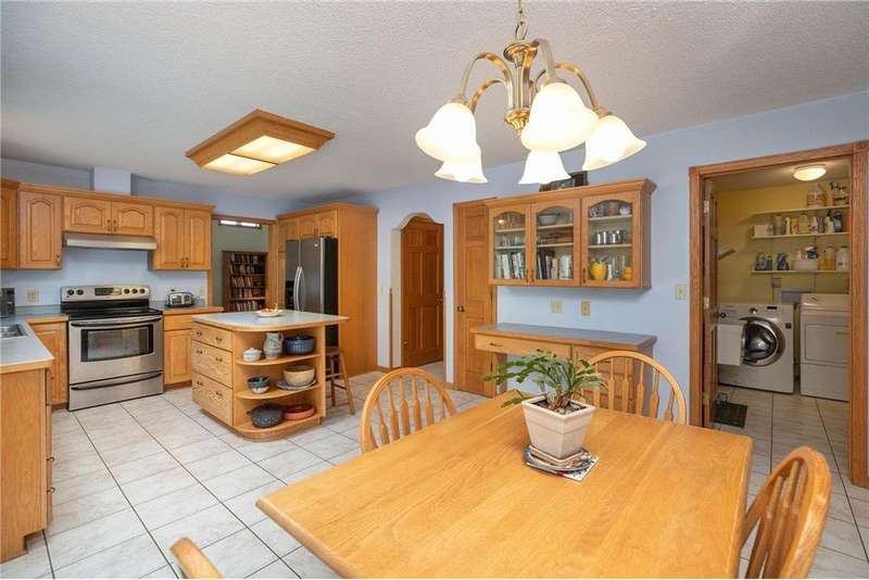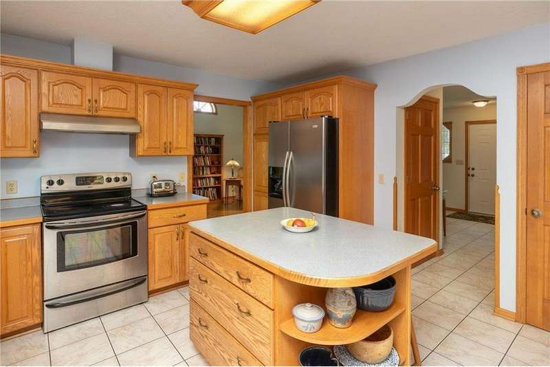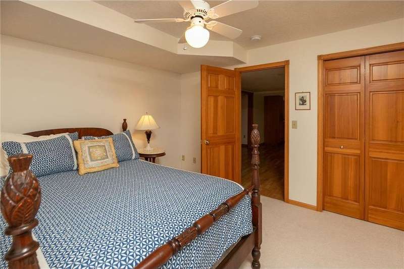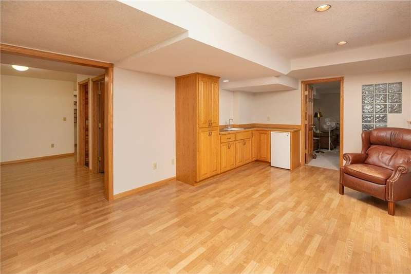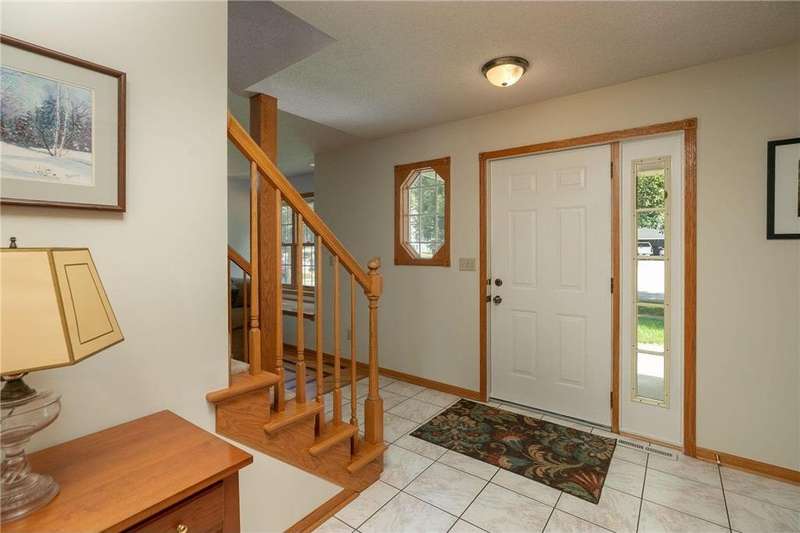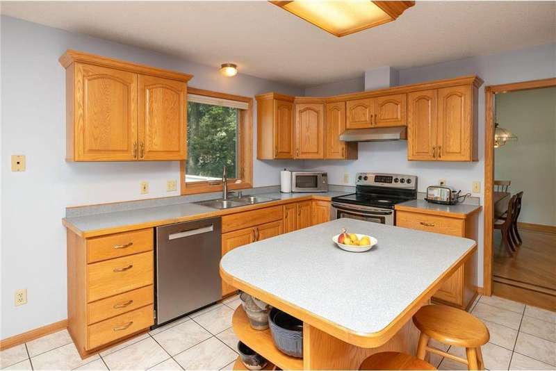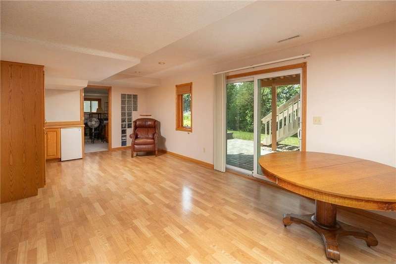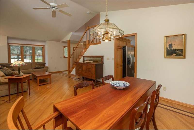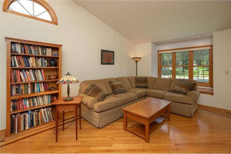 Enjoy wooded views from your deck in this spacious walkout 2-story home with vaulted ceilings, hardwood floors, main floor laundry and a main floor bedroom. Kitchen has stainless appliances, kitchen window and a center island. Family room with a gas fireplace and built-in corner cabinets. Large master bedroom with an abundance of storage closets. Lower level sauna, workshop, kitchenette, office/den, guest bedroom and family room.