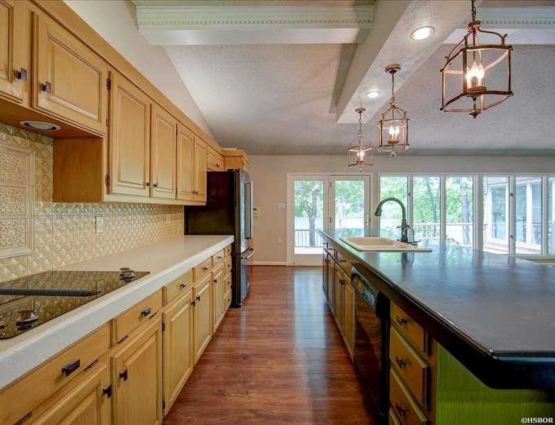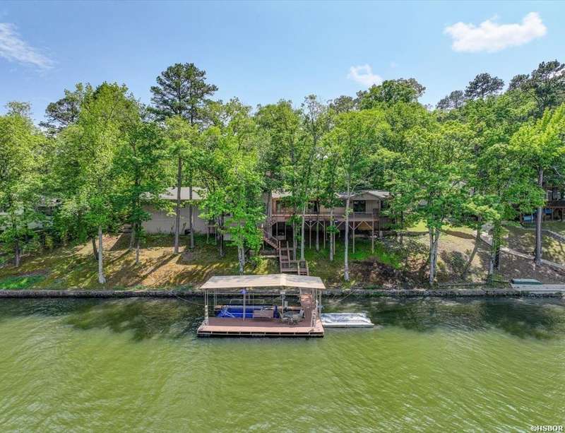 Amazing home with lake views from every window. 200' of deep year-round water. Fall in love from your first step in the door. Large open kitchen and great room with stone fireplace, wood floors and breathtaking lake views. Huge primary bedroom with updated ensuite bath and jetted tub and lake view. Two additional bedrooms with their own updated baths, one with jetted tub, and a half bath for all the guests you will have. A large game room with pool table and game tables. (negotiable) with those endless lake views. Boat slip with Hydro Hoist boat lift and sea doo ramps are ready for your summer enjoyment Triple garage. Lake pump on dock saving lots of $$ on irrigation . Have I mentioned the lake views!! Diamondhead offers a PGA sanctioned golf course, Olympic size swimming pool, children's playground, tennis, basketball & pickleball courts, clubhouse, community library, exercise room & lots of friendly neighbors. Don't miss this one of kind home!