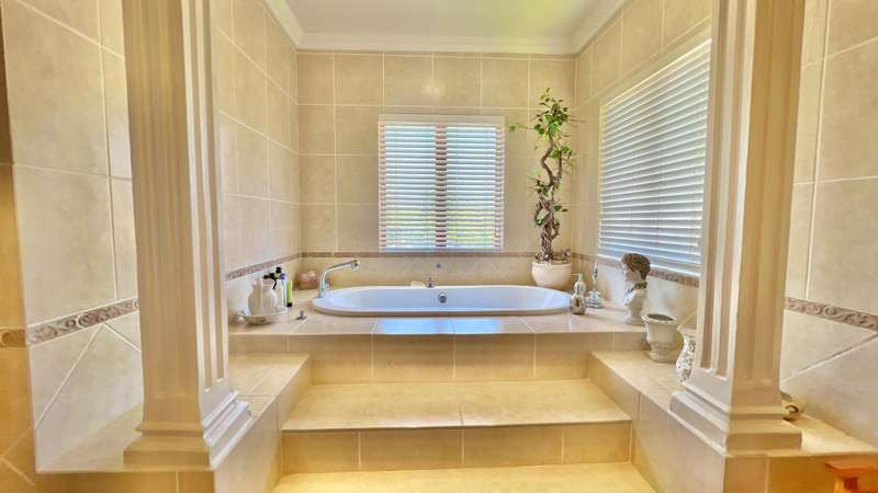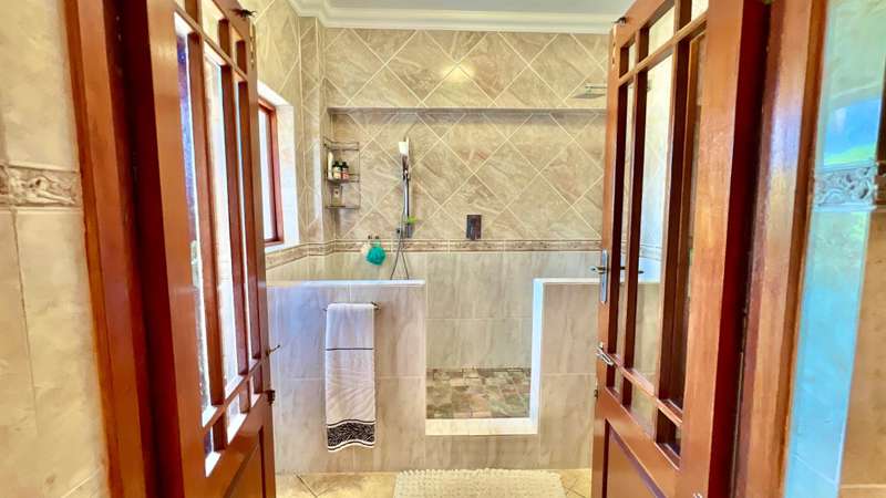 This property offers exceptional extras, including a 20,000-litre backup water supply, a powerful 12kVA generator, and top-tier security with 4 separate alarm systems, beams, and exterior security sensors. Additional highlights include domestic quarters and an outdoor shower for convenience and lifestyle appeal.