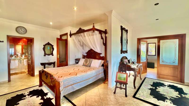 This property embodies the ultimate in luxurious, private retreat living, offering everything a guest house could need and more. The main house boasts 5 generously sized bedrooms and 3 spacious bathrooms, with the master suite setting a new standard in opulence. Complete with extensive cupboard space, a large bath and shower, its own private balcony, and even a ladies?ÇÖ dressing room, it truly caters to refined living. The home welcomes you with a reception area leading to a cozy sitting room, while the formal dining room flows seamlessly into the main lounge. Through elegant stack doors, you?ÇÖll find the sparkling pool, splash pool, undercover seating area, and a patio that captures sweeping sea views. Adjacent is a unique aviary space, perfect for transforming into an entertainment bar. A peaceful, spacious courtyard offers the ultimate serene escape, rounding out this grand main house. Fit for royalty, this is a place where every corner has been thoughtfully designed to impress.