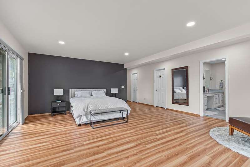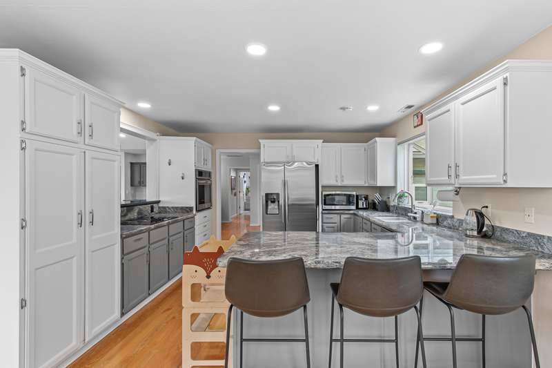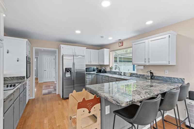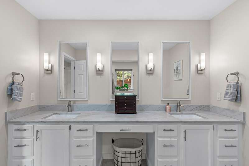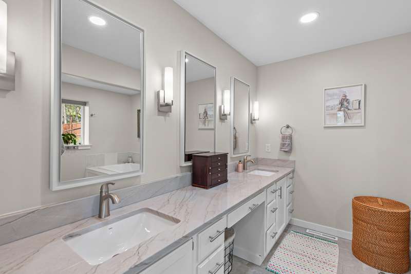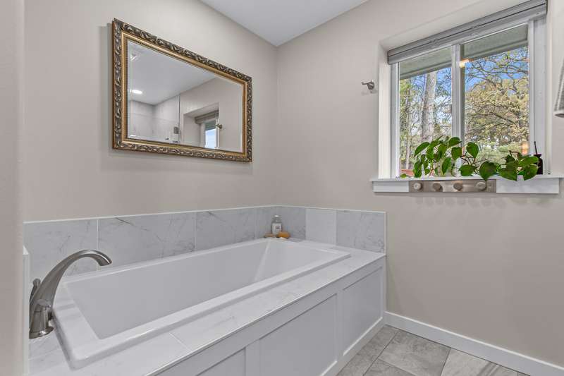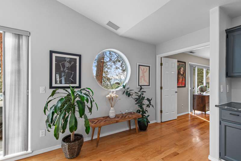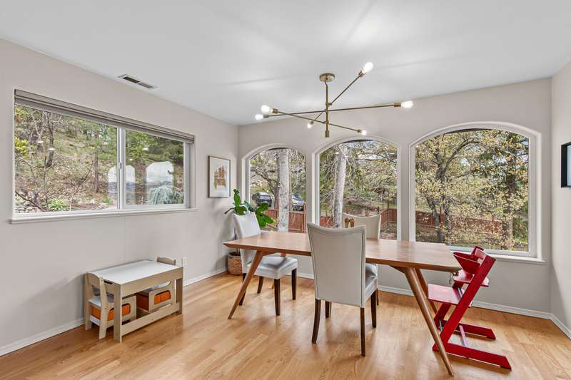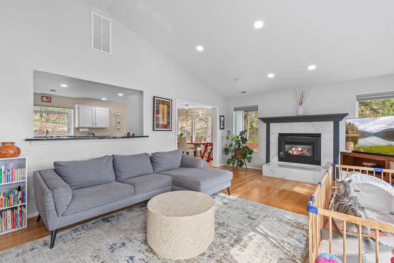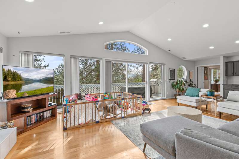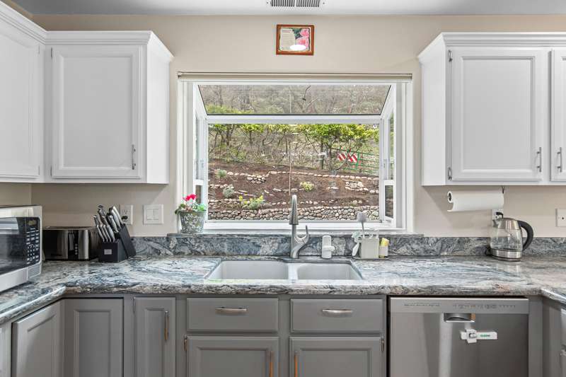Searching for the ultimate Oregon dream home and location? This is it. Nestled near the top of Ashland Loop Drive, surrounded by bike and pedestrian trails, this home offers sweeping views of the city lights and mountains. The open floor plan is filled with natural light from large windows, highlighting real oak hardwood floors and a gourmet kitchen with granite countertops, high-end appliances, and custom cabinetry. The spacious living room features a gas fireplace, wet bar with sink, and connects to a dining room, all opening to a newly painted deck spanning the length of the home. The main level includes a large bedroom and updated bath with walk-in shower. Downstairs, the primary suite is a retreat with fireplace, two walk-in closets, quartzite counters, soaking tub, tile shower, and its own full-length deck. Two additional bedrooms and a large laundry with custom cabinets complete the lower level. Oversized finished two-car garage and landscaped park-like grounds. A must-tour.