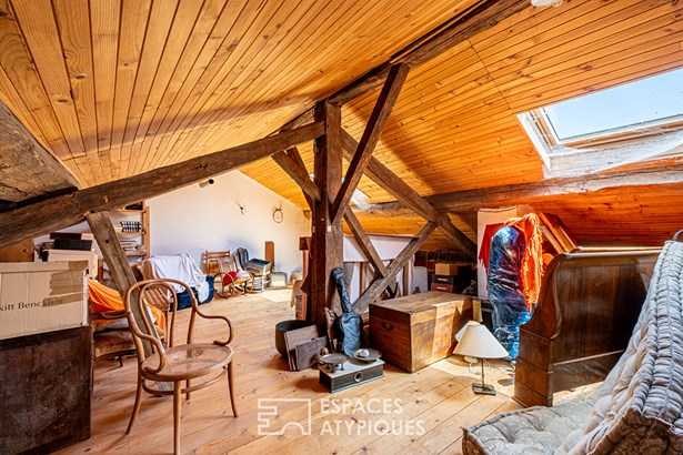 Le second niveau accueille cinq chambres supplementaires, dont deux profitent elles aussi d'une vue degagee sur la riviere, tandis qu'un dernier etage, constitue de combles entierement isoles, laisse libre cours a tous les projets : dortoir, salle de jeux, espace cinema ou atelier d'artiste. Chaque recoin de cette batisse respire le charme d'antan et la promesse de moments suspendus dans un cadre naturel rare.