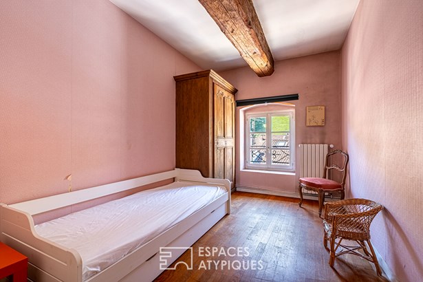 À l'etage, trois chambres s'y devoilent dont une suite avec douche et balcon prive offrant une vue imprenable sur les flots tranquilles de l'Ain. Une salle de bain et des toilettes independantes completent cet espace nuit.