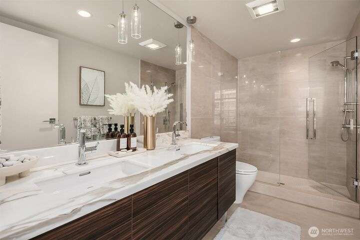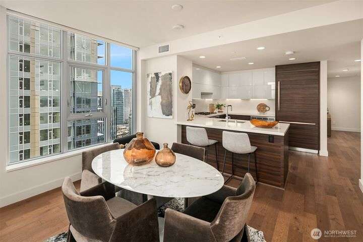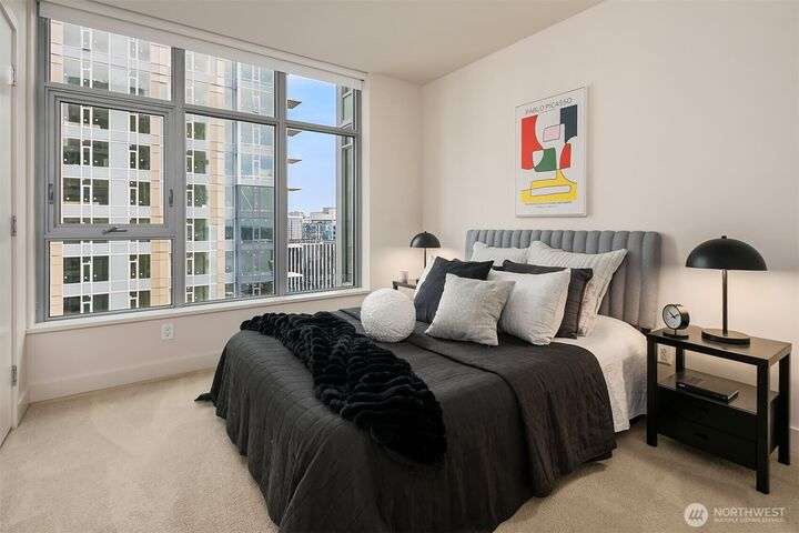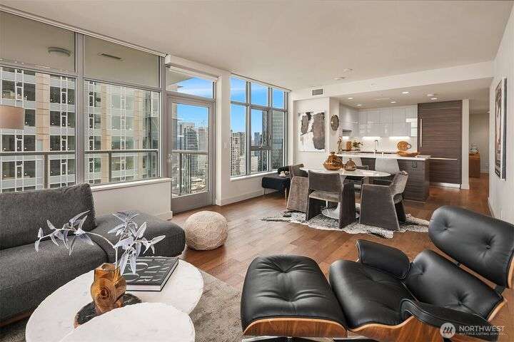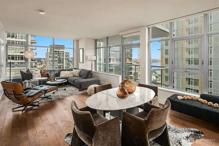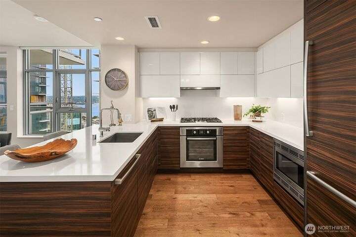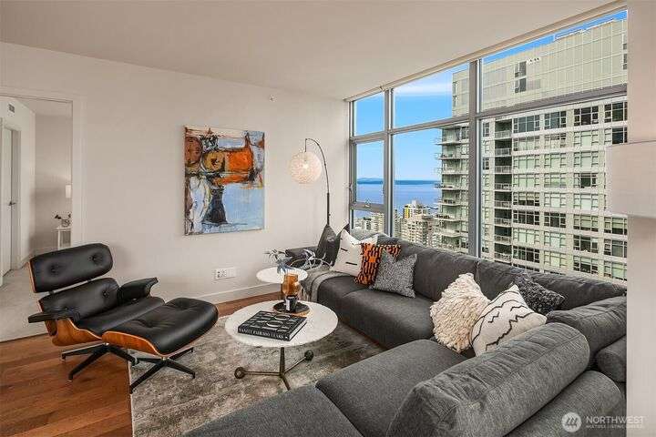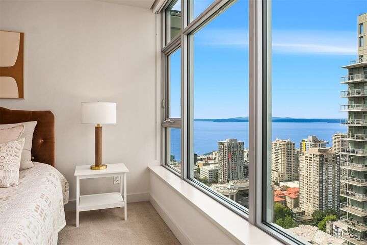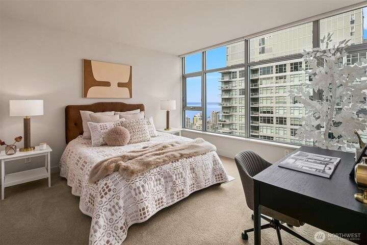 Best value at Insignia! Positioned high on the 37th floor, this 2 bedroom corner unit has both Puget Sound AND Lake Union views, plus two parking spots. Bright & modern unit w/ sleek finishes, quality materials & an open floor-plan. Generous master suite w/ large walk-in closet, water views and attached spa-like bath. Enjoy indoor/outdoor living and entertaining with the large covered view deck. Resort-like amenities include a 2-level gym with yoga & Pilates studios, indoor swimming pool, hot tub, steam room, dry sauna, open-air resident park, movie theater, multiple roof-top Sky lounges with the best views of the city & a 24-hr concierge. Located just a few blocks from Amazon HQ, Whole Foods, the Space Needle & many fabulous restaurants.