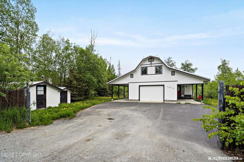 Set on a gated hilltop lot overlooking Big Lake, with dedicated lake access within walking distance! This large well crafted two story home features 3 bedrooms, 2.5 baths and TONS of storage for all your Alaskan toys! Highlights include two carports with overhead storage and two powered sheds, one with a wood stove for workshop space. This is the perfect place to embrace lake life all year round!