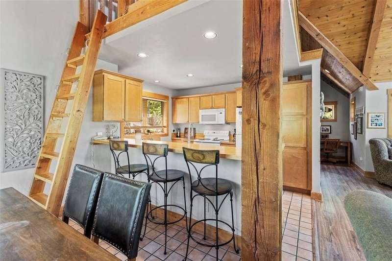 Tucked away in a peaceful, wooded setting, this well-maintained 3-bedroom home with an additional loft offers the perfect blend of privacy and convenience. Located just a stone's throw from the national forest, scenic trails, rec path, and nearby bus stop. The living area is warm and inviting, with vaulted ceilings and ample natural lighting. The loft area acts a versatile flex space for a home office, sleeping area, or den. Additional features include a one-car detached garage, community hot tub, and well managed exterior and common areas. Don't miss this rare opportunity to own a home that has been meticulously maintained by the original owners.