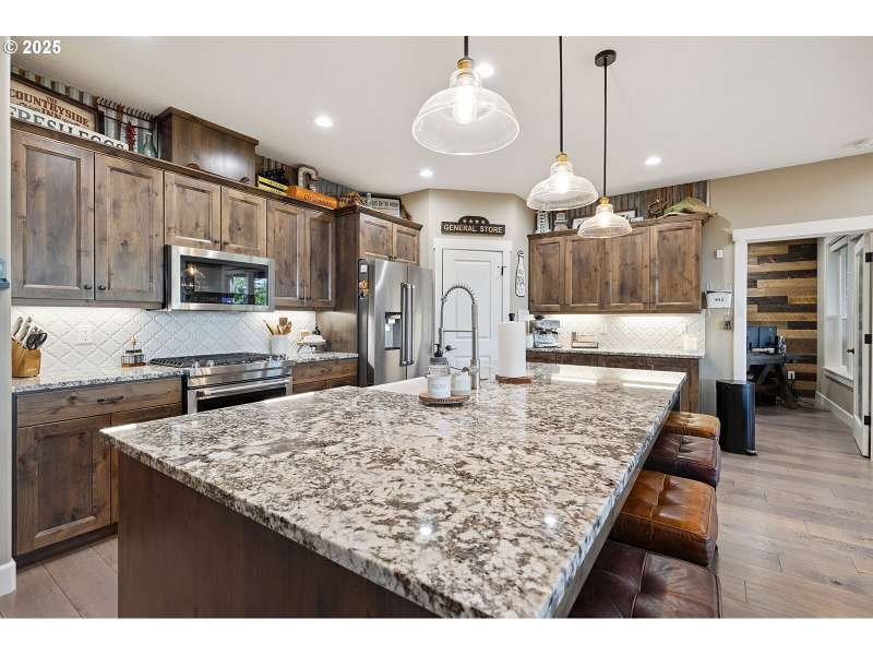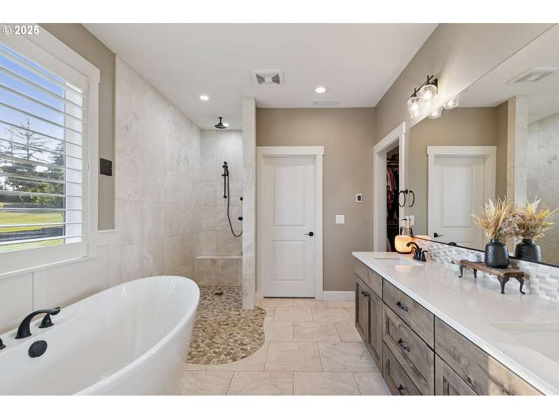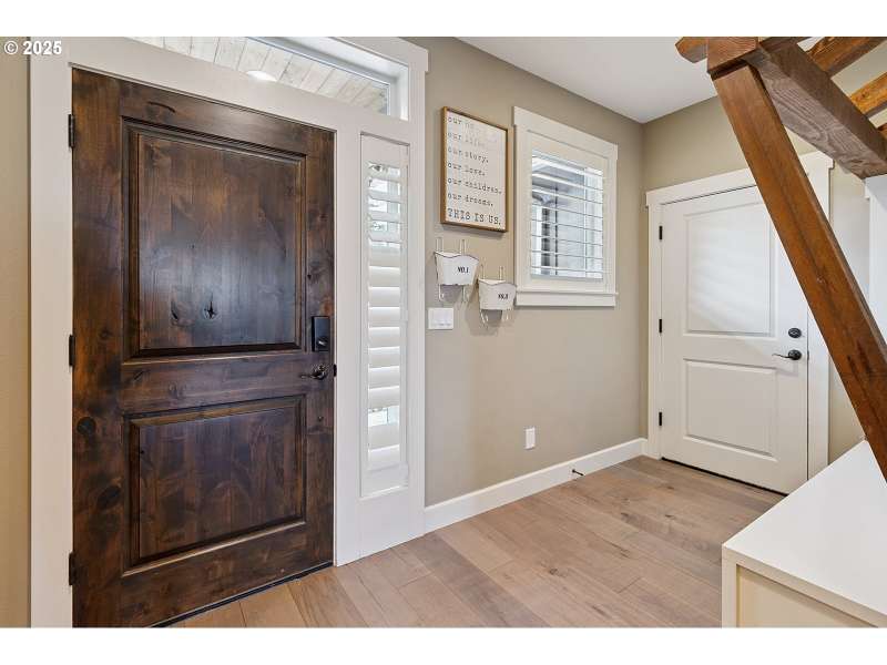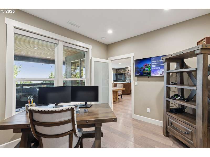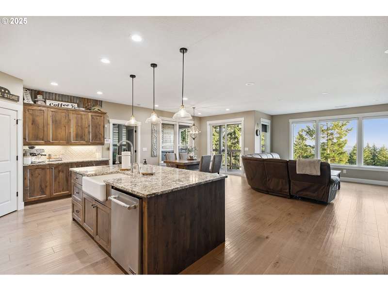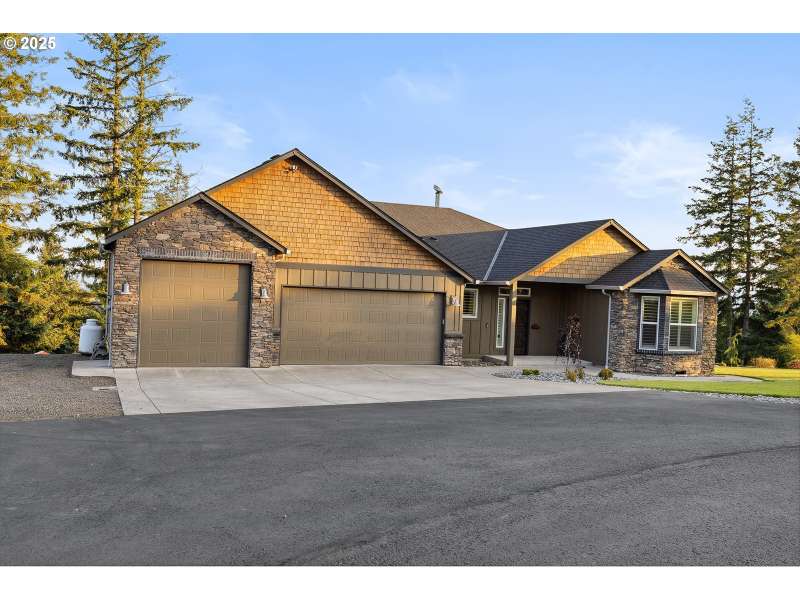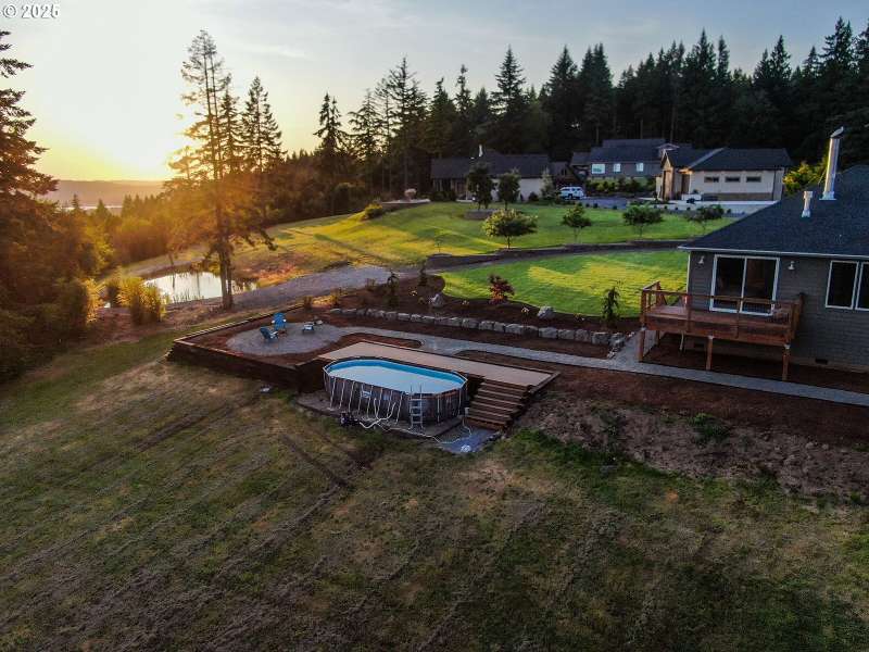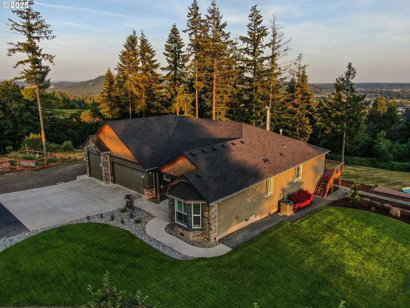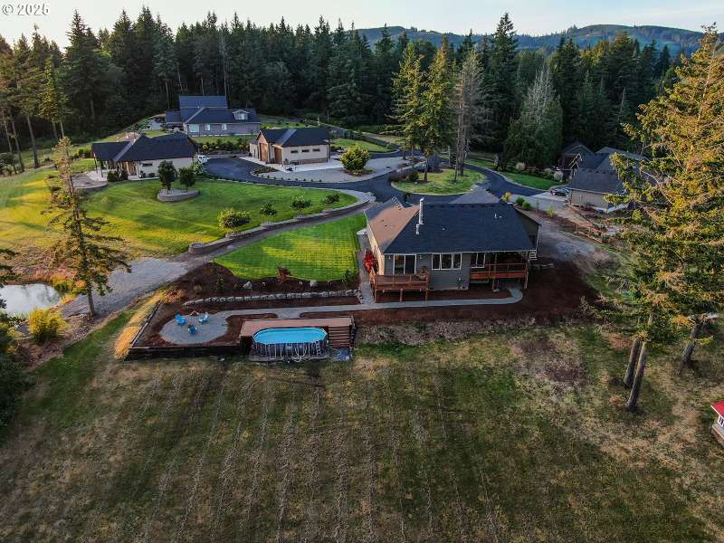 Welcome to this custom 1 level beauty in a gated community on 5.4 acres with stunning river, city and territorial views! Close in Woodland location, just 5 minutes to I-5, but you will feel a world away in your own paradise! 4 bedrooms, 2 bathrooms. Timber frame details, engineered hardwood floors, and bright, light filled windows capture the views & evening sunsets over the Columbia river. Great room floor plan with cozy woodburning fireplace surrounded in stone with custom built-in wood cabinets with leathered granite. Kitchen features custom cabinets, granite counters, eating island, and pantry. Enjoy a propane gas range, and instant hot water. Luxury primary suite features a propane gas fireplace, private deck, attached bathroom with soaking tub, walk in shower & spacious walk-in closet. Brand new carpet and recent newly painted interior. This immaculate home is move in ready! Attached 3 bay garage with epoxy coated floors has a 10 X 32 ft bay big enough for a boat with tower or whatever toys you have! Outside relax away on any of your three decks, off the main home, primary bedroom or poolside, with new trex composite decking! No projects to do here with new landscaping, sprinklers and a beautiful above ground pool! Wooded land features extensive trails to explore year-round!