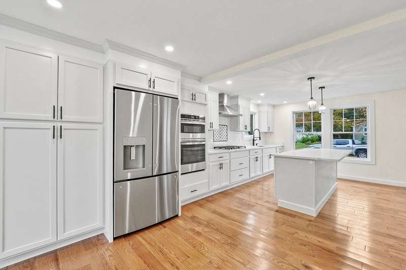 Shrewsbury Charm Meets Modern Comfort! Don't miss this impeccable 4-bed, 3-bath Cape-style home situated in an amazing Shrewsbury neighborhood. As you enter inside, you're greeted by beautiful hardwood floors & modern fixtures/finishes throughout. The open-concept 1st floor is designed for modern living, boasting a light-filled living room that leads into a chef's kitchen, complete w/ a center island, SS appliances, & a dedicated dining area w/ deck access. A versatile 1st floor bedroom & full bath offer incredible flexibility. Upstairs, discover a thoughtfully laid-out 2nd floor w/ 3 more bedrooms, including a luxurious primary suite featuring a walk-in closet & a private full bath - a true retreat! Plus, enjoy the convenience of 2nd-floor laundry! The finished lower level offers even MORE living space w/ a large family room. W/ central AC, interior garage access, & an A+ location near local amenities & major routes, this home truly has it all.