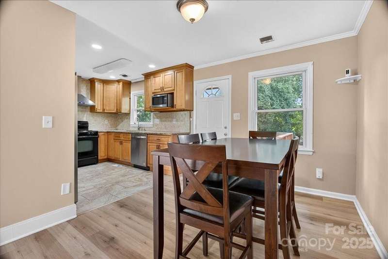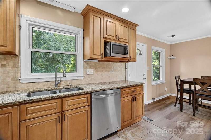 Welcome to University Park, a vibrant neighborhood just minutes from Uptown! Situated on a private, fenced .21-acre lot, this updated home offers room to expand or create your own backyard oasis. Inside, enjoy new LVP flooring, an updated full bath, a newer HVAC system (2019), and a spacious kitchen with stainless steel appliances, granite countertops, ceramic tile flooring & backsplash, and a mounted range hood. Natural light pours through the large picture window in the living room and the cozy front porch adds southern charm. The extended driveway provides ample parking. Enjoy unbeatable access to Charlotte's top destinations: BOA Stadium, Truist Field, Spectrum Center, Camp North End, and major highways - all just minutes away. Whether you're commuting for work or enjoying a night out, this location offers the ultimate in convenience and lifestyle. Don't miss your chance to own a move-in ready home, with great potential, in one of the Queen City's fastest-growing neighborhoods!