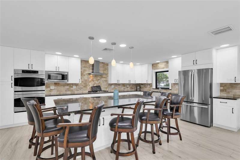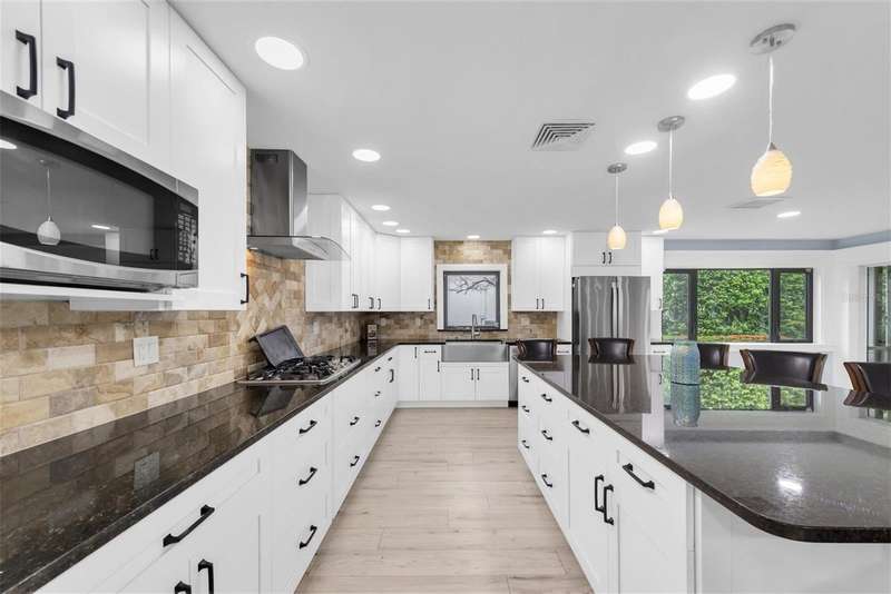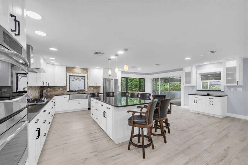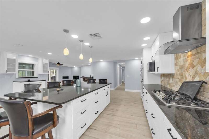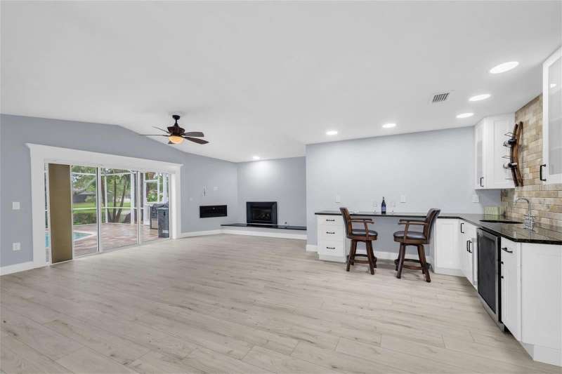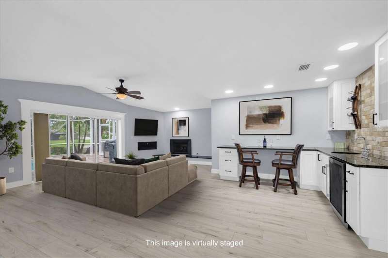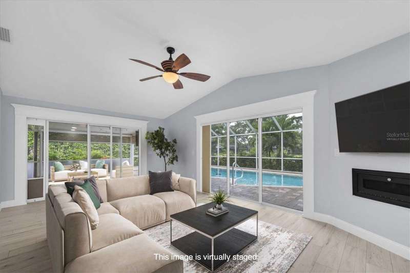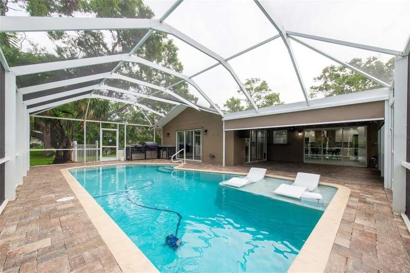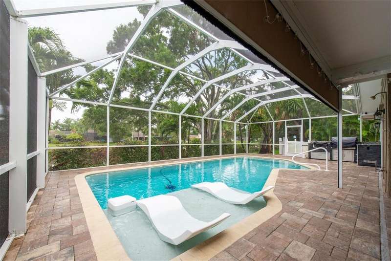 One or more photo(s) has been virtually staged. New price! Make this house your dream home! Tucked away in the tranquil community of Feather Sound. Solid block construction three-bedroom, two-bathroom retreat has been beautifully updated and is waiting for you. Step inside and discover open spaces thoughtfully designed to provide comfort and showcase your personal style. Entertaining will be a breeze with open kitchen, supersized center island, plenty of cabinet storage and counter space makes it perfect for hosting family and friends. The bright and spacious living area features a modern gas fireplace, two sliding doors that take you out to the screened in pool area with outdoor kitchen for your grilling favorites! The primary bedroom boasts an ensuite bath with step-down shower, double sink vanity, toilet closet while providing the ideal retreat anytime. The home is designed with the perfect flow of space for entertaining and enjoying life. Relax on the covered outdoor lanai with electric shades, savoring a refreshing morning or unwinding at the end of your day. Relax on the sundeck lounge chairs or take a refreshing dip in the solar heated saltwater pool. You will love the serene views of the pond and nature galore! Close to shopping, airports, entertainment and dining. Call today for your private showing.