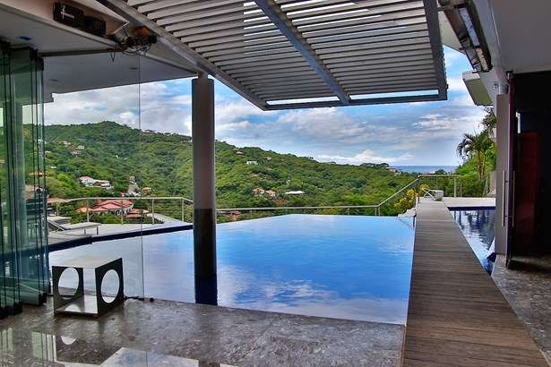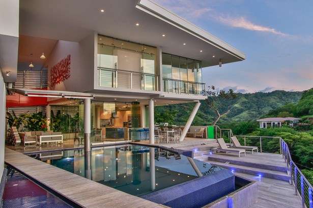 Welcome to Malinche Palace, an incredible 8 bed, 8.5 bath income producing ocean view home perched above the Pacific in Playa Ocotal in Guanacaste, Costa Rica. Experience breathtaking views of the ocean and mountains in almost every direction. Modern design meets comfortable indoor outdoor living, and has the capacity to cater to large groups. This gorgeous property has 12% net returns and has many rentals on the books!From the moment you enter you will discover an open living space connecting the large kitchen and dining and entertaining areas, surrounded by unique floor to ceiling glass walls that open completely, allowing views in every direction. The kitchen is sleek, stylish and modern, designed to keep up with the gourmet and look amazing. The walls open onto the outdoor living area and the multi-level terraces around the infinity pool with its beautiful teak walkway. Imagine having dinner out here every night and listening to the tropical sounds and the waves.The art deco style orange staircase leads to 4 bedrooms, each with unique mosaic tiled ensuite bathrooms and walls of glass with gorgeous views. Most open onto a private veranda overlooking the terraces, pool and tropical gardens below. The stunning coastal views from the principal bedroom encompass mountain, ocean and the boats in the bay below.The separate guest house has a full kitchen, living and dining area that is open and spacious, and well connected to the outdoors with walls of glass doors to capture the amazing views for your guests’ enjoyment. The 2 guest bedrooms also feature ensuites and private verandas.There is a ground floor garden suite that is handicap accessible and a large media room. Last, but not least, there is an incredible honeymoon suite with a wall of glass that overlooks the boats and beach bay of Playa Ocotal.Are you looking for a stunning investment property with amazing returns? Look no more. Casa Malinche Palace is the one for you!