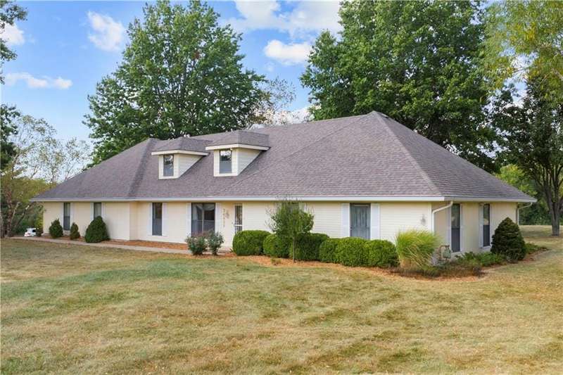 Welcome to this exceptional 1 1/2 story home, offering the perfect blend of comfort, space and functionality. Nestled on 3 beautiful acres in Grain Valley, MO this property is ideal for those who crave both privacy and convenience. Inside you will find 3 spacious bedrooms plus a non-conforming bedroom which could be used as a loft or office space and 3 full baths the home has been thoughtfully designed for everyday living. Car enthusiast and hobbyists will be thrilled with the garage space. The home features a tandem 6 car attached garage plus a detached 3 car garage with electricity, providing room for a car collection, workshop or recreational storage. With it's acreage, versatile living space and incredible garages this home is truly one-of-a -kind. Whether you're hosting gatherings, enjoying the outdoors, or working on your passion projects, this property has it all.