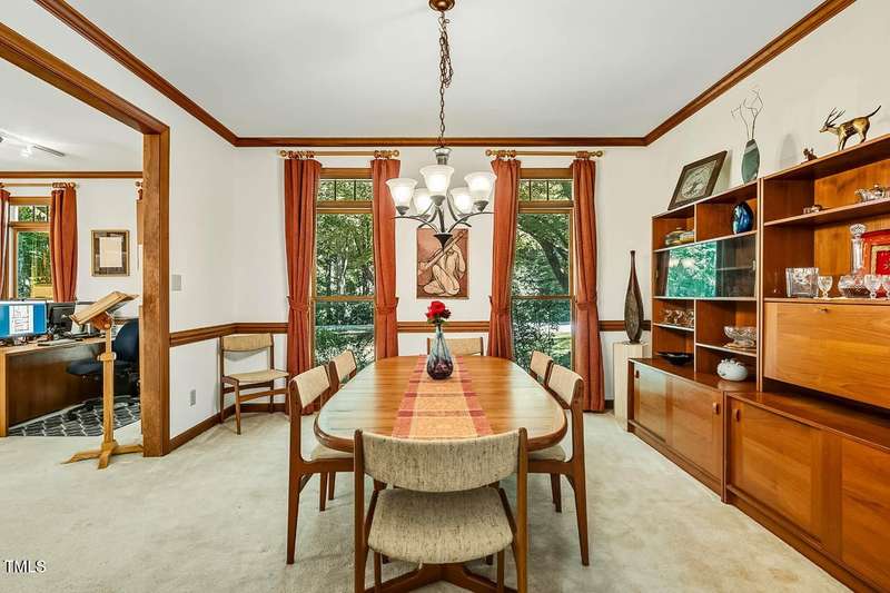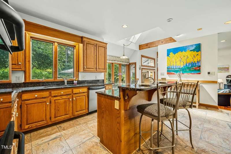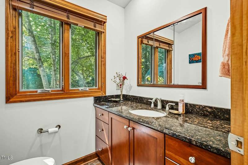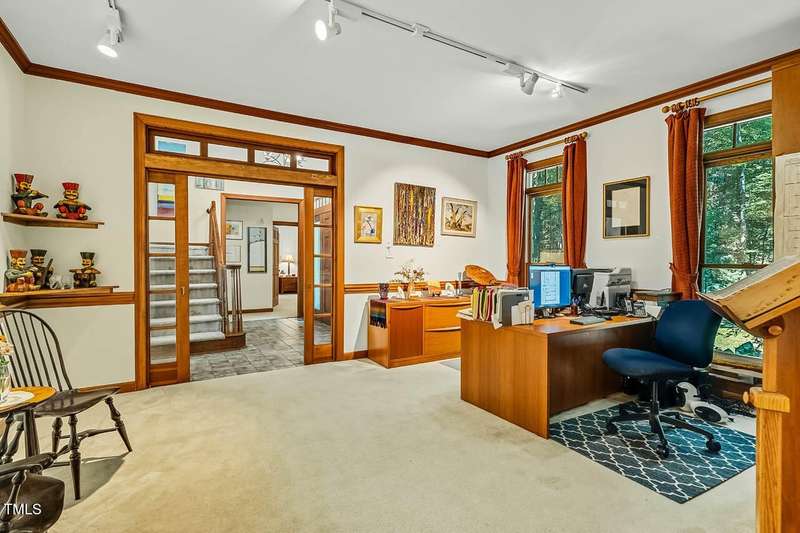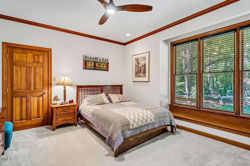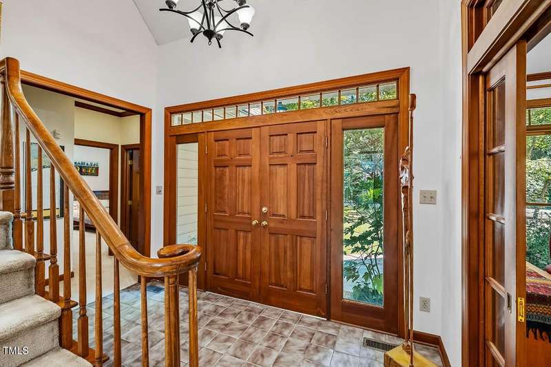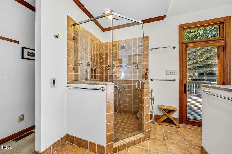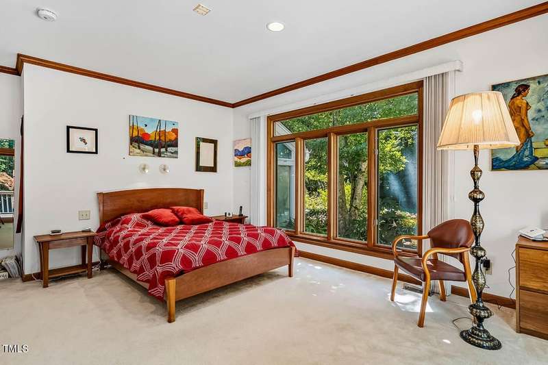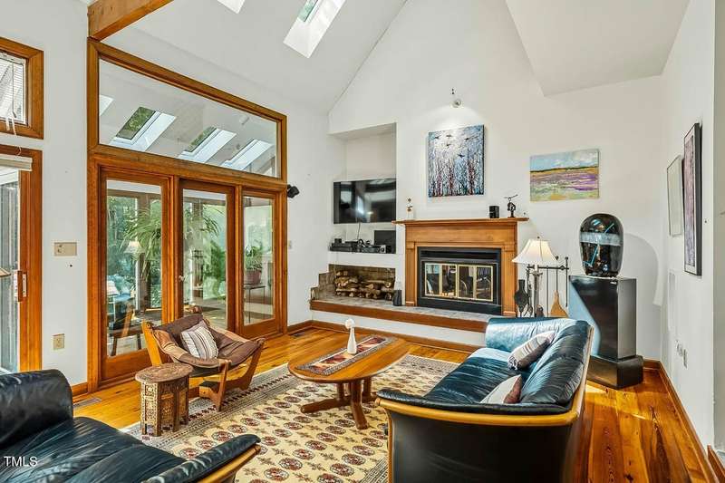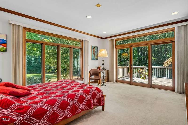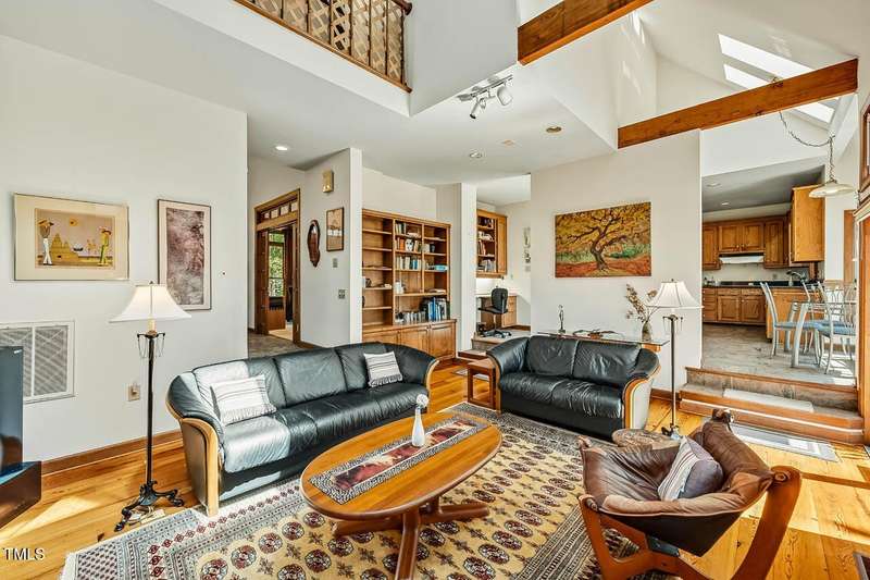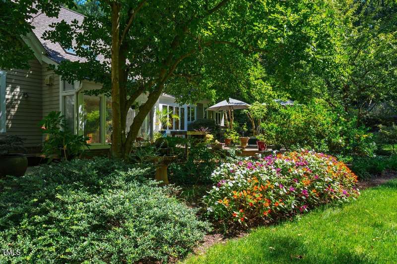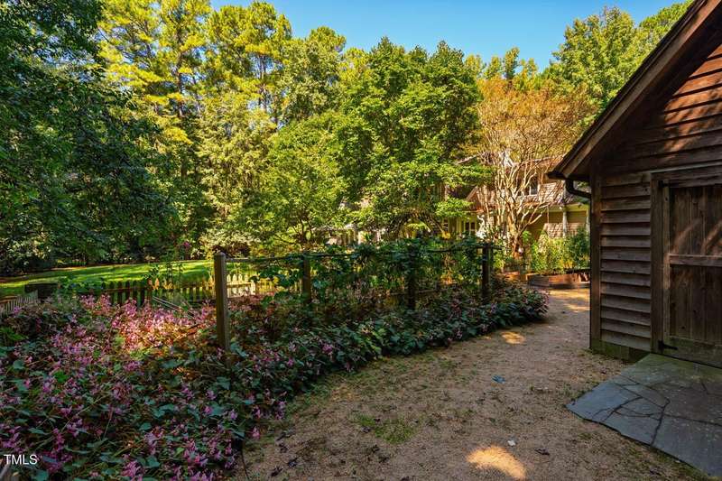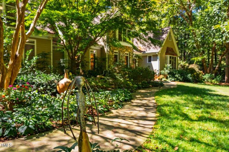 Discover the perfect blend of tranquility and convenience at this beautifully maintained 4-bedroom, 3.5-bathroom home, ideally situated on 2 acres fully fenced and professionally landscaped just minutes from downtown Chapel Hill. Tucked behind a gated driveway, this private retreat offers peace and privacy without sacrificing access to top-tier amenities and the acclaimed Chapel Hill-Carrboro City Schools. Inside, you'll find generous living spaces and thoughtful upgrades, including geothermal heating and cooling on the main floor for year-round efficiency(2024), and a whole-house generator for added peace of mind. Wine lovers will appreciate the custom, walk-in, climate-controlled wine room-perfect for entertaining or curating your private collection. Outdoors, enjoy beautifully designed gardens, Ipe decks, a fenced vegetable plot, and a variety of fruit trees-ideal for those with a green thumb or anyone who appreciates fresh, homegrown produce. This is more than just a home-it's a lifestyle. Whether you're relaxing in the peaceful surroundings, entertaining guests, or exploring the vibrant culture of Chapel Hill just minutes away, this exceptional property offers it all. Wait, we forgot to mention that there is a secondary bedroom and full bath in addition to the primary suite on the main floor, a new roof w/copper trim in 2023 and heated flooring in kitchen, mud room and all but one bathroom. Don't miss this rare opportunity to own a truly special property in one of the Triangle's most desirable locations.
