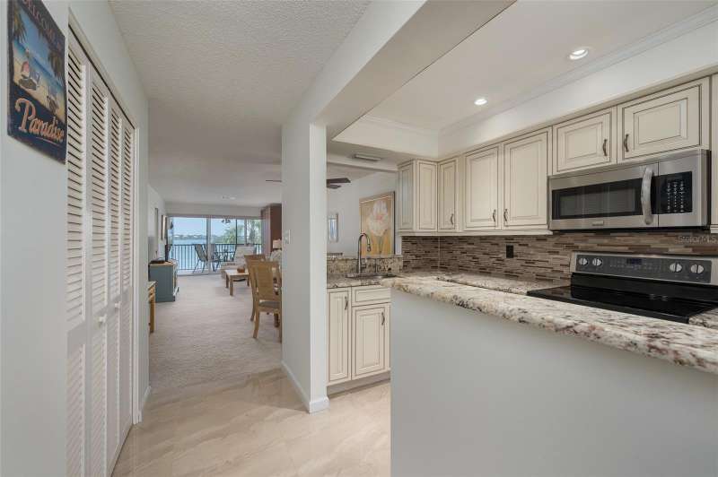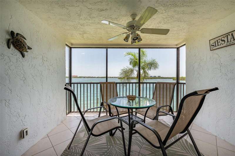 If you love water views, this is your place! Imagine enjoying the sunrise over Little Sarasota Bay every morning from your lanai and the sunset at Turtle Beach. Sunrise Cove you can have the best of both worlds! It offers so many amenities from boating, kayaking, lighted pickle ball and tennis courts with rubberized surface, large clubhouse with kitchen and billiards and fitness rooms, picnic tables at the water’s edge and a lending library! This condo is located on the South end of Siesta Key in the bayside community of Sunrise Cove. It has one bedroom, one bathroom with a custom-built queen Murphy Bed for extra comfortable sleeping space. This condo is located directly on the Intracoastal Waterway with gorgeous views from your lanai, living area and bedroom. An updated kitchen with beautiful tile in the kitchen and entryway and beautiful stainless-steel appliances. This fully furnished condo is ready to move in to with maintenance-free living. Plantation shutters in the bedroom and impact windows in the bedroom and kitchen. Enjoy lounging at the beach or swimming in one of the two bayside heated pools. There are also boat docks available for a very low yearly fee, as well as discounts on rentals at the Bayfront Marina next door. Wi-Fi is available to all rental units and common laundry areas are on each floor. The recent updates were done in 2015. Sunrise Cove is a very social community with an active social calendar. It is located right next door to Turtles Restaurant and only .2 miles from the fabulous Ophelia's Restaurant. Free Trolley stop is just across the street from the complex, with free rides to shopping, restaurants, the public beach of Siesta Key and Siesta Key Village! The complex allows 1-month rentals and has on-site management for your rental options. Current list price is below recent property appraisal dated 10/27/2023.