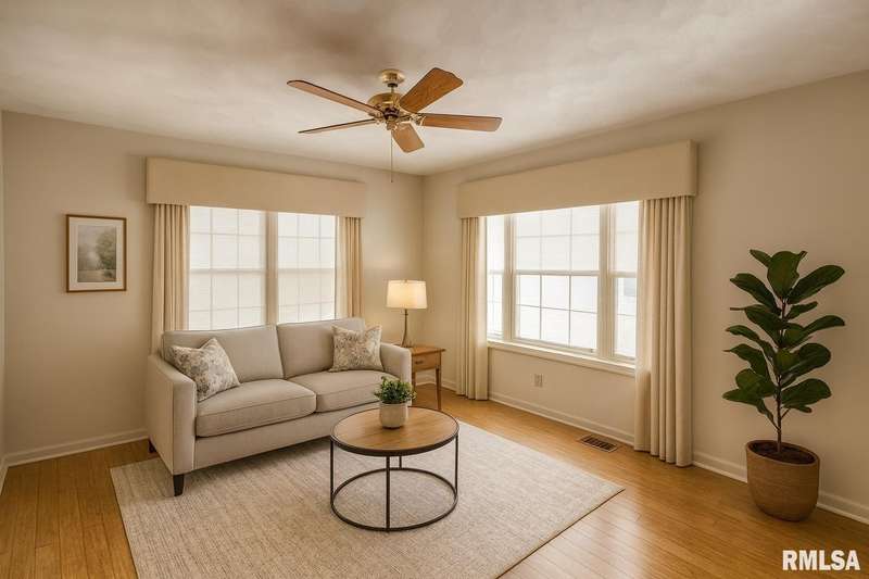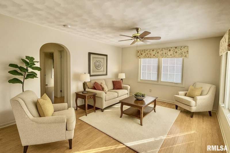 This beautifully updated 3-bedroom, 2-bath, 3 car garage home offers the perfect balance of comfort, style, and convenience. Step inside to find thoughtful upgrades throughout, including bamboo flooring in the family room and two main-level bedrooms, an updated bathroom-complete with whirlpool tub and a fully renovated kitchen featuring granite countertops, stainless steel appliances, a gas range, and a sleek French-door refrigerator. The finished basement expands your living space with a rec room and kitchenette, perfect for entertaining, game nights, or extended stays. Whole house attic fan adds to the comfort and energy efficiency! Outside, enjoy the brick patio, exterior shed, and a spacious attached 3-car garage with an additional workshop area—ideal for hobbies, storage, projects-or as a sunroom!-It’s THAT nice! Have a little 4 legged friend-he'll love the doggy door to the fenced in rear yard! Updates include the roof (2012) , furnace (2019), air conditioning (2020), whole house air cleaner/purifier, water heater (2024), cleaned duct work (2025), gutter guards and Pella windows with built-in screens, ensuring comfort and efficiency year-round. Located in a prime Peoria location, you’re never more than five minutes from shopping, dining and parks. This is truly a home where all the work has been done—just unpack and enjoy. Pride of ownership shows inside and out—don’t miss your chance to make this your new home!