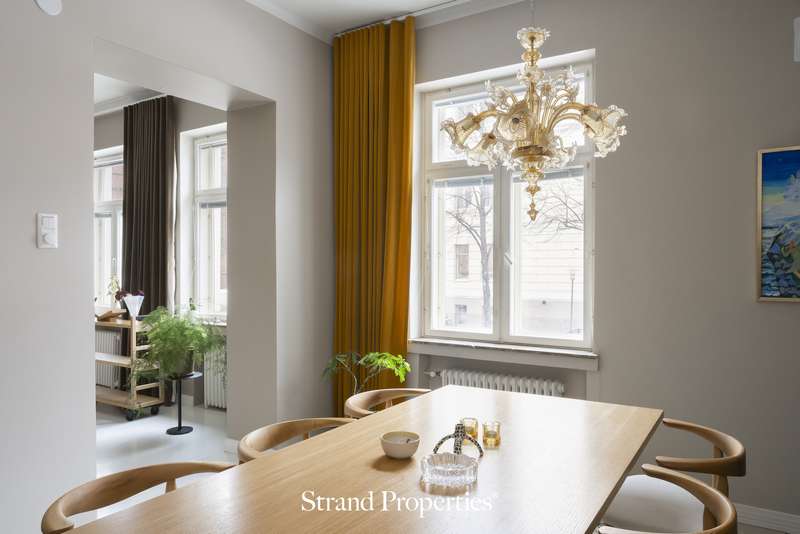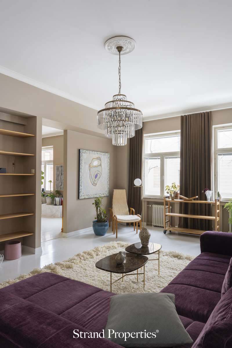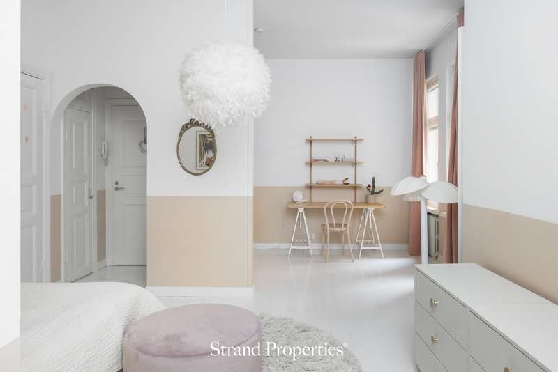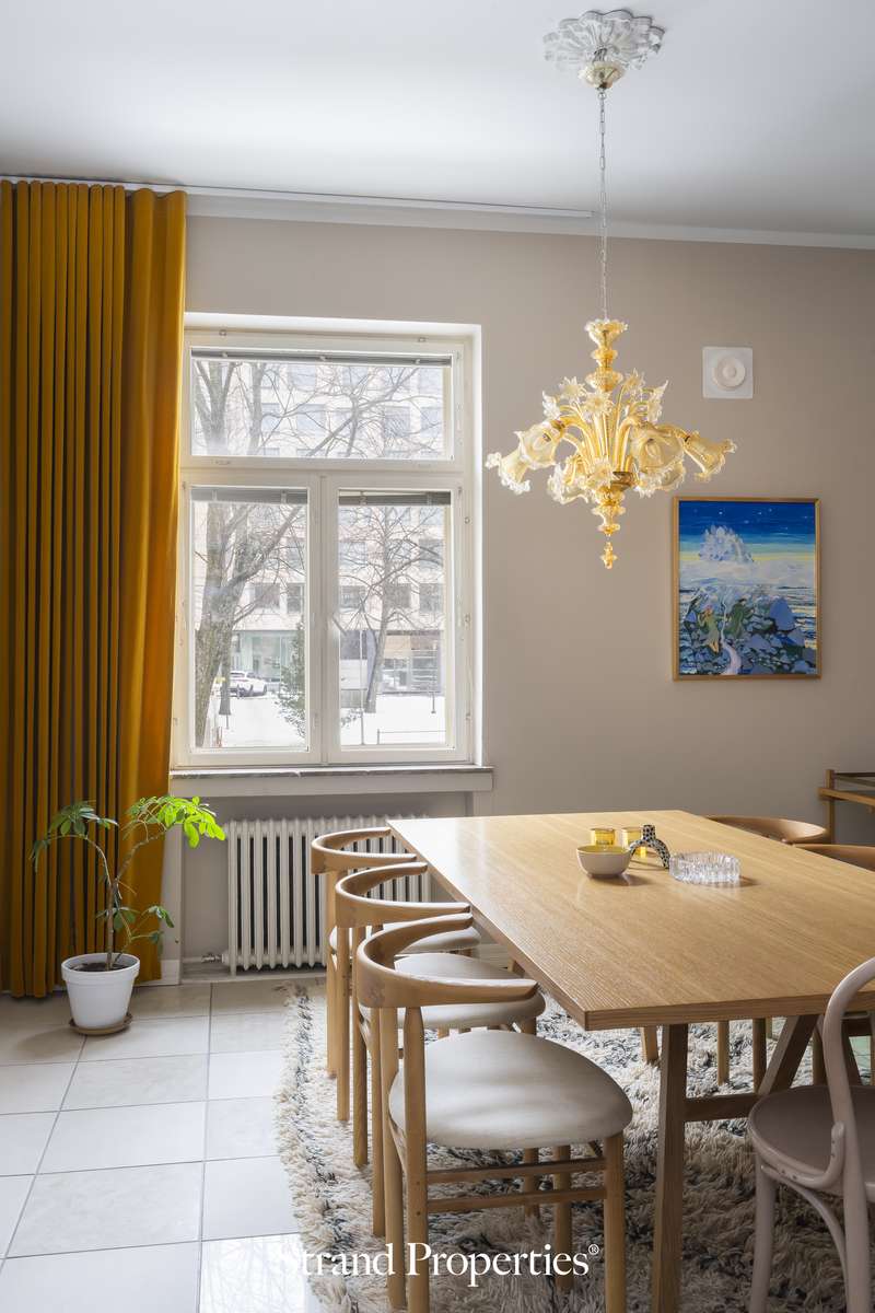 1890-luvun charmia Ullanlinnankadulla, arvostetulla Design District-alueella. Kaartinkaupungin sydämessä, siinä kuuluisassa vaaleanpunaisessa Tove Janssonin talossa, ihastuttava huoneisto toisessa kerroksessa. Klassisen kauniit, tilavat huoneet ja upeat kaupunkinäkymät aina Johanneksen kirkon torneille asti. Talolla on mielenkiintoinen rakennushistoria, sillä se on rakennettu useassa osassa eri aikakausina. Vuonna 1890 rakennuksessa oli vain 3 kerrosta ja kerrokset 4-5 on rakennettu myöhemmin vuonna 1928. Rakennus huokuu historiallista charmia upealla paikalla Design museon naapurissa. Tästä linkistä pääset lukemaan lisää talon historiasta: https://www.tahtitorninrinne.fi Asunnon korkeat huoneet ja suuret ikkunat tuovat runsaasti luonnonvaloa sisään, luoden avaran ja ilmavan tunnelman. Asunto on toisessa kerroksessa hissillisessä rapussa. Keittiöön mahtuu suuri ruokailuryhmä ja kaappitilaa on todella paljon.
