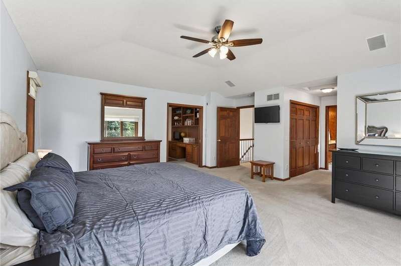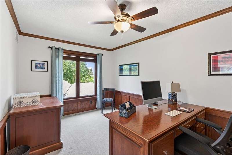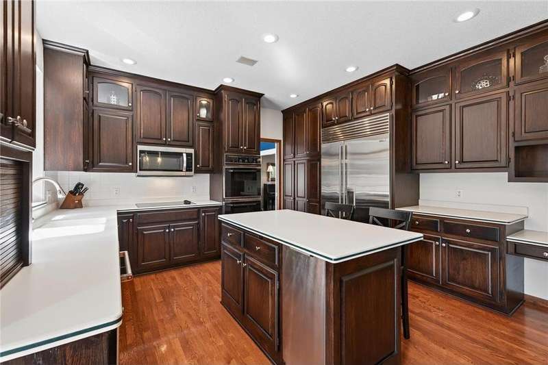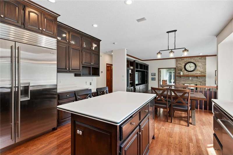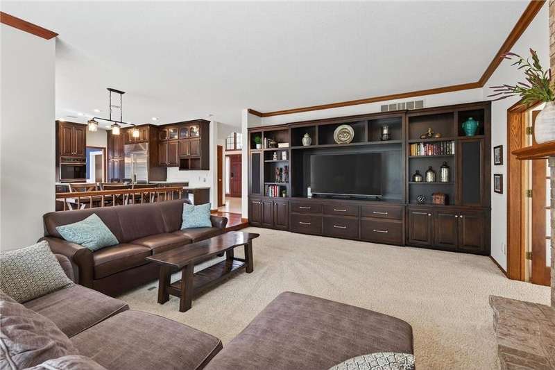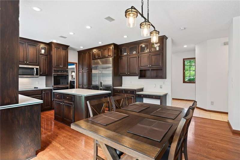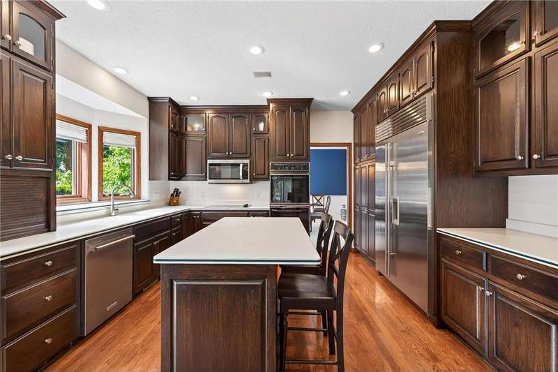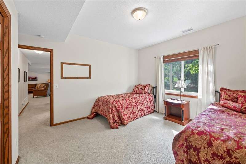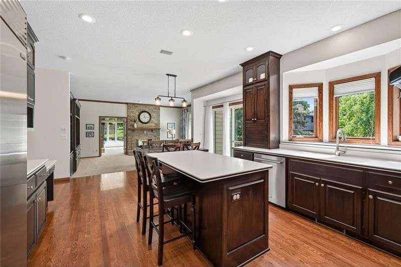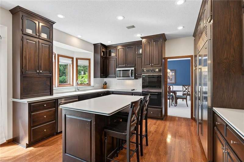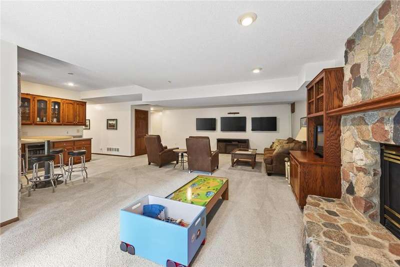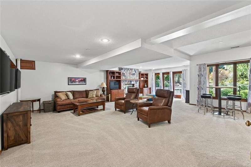 Step into this impressive Mendota Heights two story & immediately feel at home! Lovely decor, perfect condition & all of the gorgeous finishes & amenities you could hope for. Just SOME of the amazing features - gourmet kitchen with center island, KitchenAid double ovens, Subzero refrigerator, newer microwave (2024), refreshed/refinished cabinets; a massive built-in entertainment center in the family room – also refinished, a wood burning two-sided fireplace that also serves the vaulted sunroom with wood plank ceiling; hardwood floors through the kitchen & informal dining area. Upstairs, the huge owner’s bedroom suite is simply amazing – featuring a deluxe bath with separate jetted tub and shower, and double closets. French doors lead to the connected office/den/nursery with yet more built-ins. Matching desk is included! Two more spacious bedrooms and a remodeled full bath complete the upper level. The walkout lower level offers even more incredible space designed for fun! Large gathering area with wet bar, including beverage fridge; a gas fireplace with stone surround flanked by built-ins; another full bath & a 4th bedroom/workout room. Step out to the aggregate patio to enjoy views of mature trees and terraced gardens. All of this, plus! Central vac, garage heater, irrigation system, fully fenced backyard, storage shed, & the list goes on. A beautiful setting on a quiet cul-de-sac, conveniently close to both downtowns and the airport. You don't want to miss it!