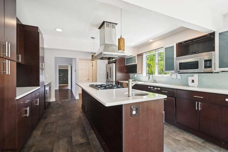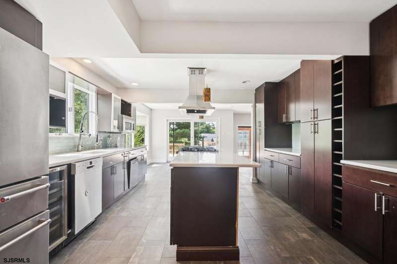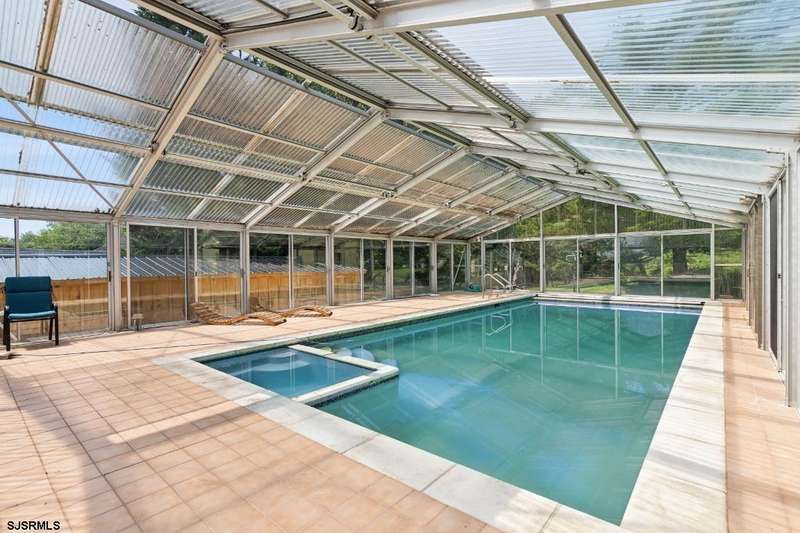 Welcome to this 5600+ square foot contemporary split level 6 bedroom home (on a double lot); located in the desirable neighborhood, Absecon on the Bay. An open foyer greets you upon entering this sprawling home. To the right, you will find a bonus room/office/play area and an attached 3 car extended garage (Tesla charging capability). To the left, a dining room features high ceilings and wraps around kitchen and a brightly lit family room. Also off the dining room is a grand living room/library featuring vaulted ceilings, a wet bar complete with Astra espresso maker and built-in custom bookshelves. In the kitchen, you will find high-end stainless steel appliances (Wolf, Viking, Bosch), an island, wine fridge and eat-in dining area. Off the kitchen there is a half bathroom and mud room. The family room highlights a wood-burning fireplace and floor to ceiling windows and doors leading out into a sun room (non-temperature controlled) looking onto the indoor/outdoor in-ground pool. Enlarged sliding glass doors lead out of the kitchen and on to an expansive multi-level deck (built in 2025 and approximately 2,000 sq ft) complete with a fire pit at the bottom level; absolutely perfect for entertaining. Sliding glass doors from the in-ground pool and sun room also provide access to the newly built deck. The in-ground pool provides the capability of year round utilization, due to the glassed-in sun room with a retractable roof (retraction is functional and AS-IS). Heading back into the house and up a few stairs you will find 2 bedrooms, a full bathroom and a walk-in laundry room. Continuing up to the next landing are another 3 bedrooms, a full bathroom and the primary ensuite. The primary ensuite offers an oasis as you walk into a spacious sitting room/office area complete with customized cabinets and shelving. The primary bedroom overlooks the pool and deck area complete with a Juliet balcony. There are also two walk-in closets and additional laundry. The primary bathroom highlights a soaking tub, standing shower, double vanity and has been completely updated. This expansive home is move-in ready, a must-see and located near major highways, Atlantic City and Faunce Landing/Absecon Creek. An enlarged outdoor shed (approx 1000 sq ft) highlights a golf simulator with impact screen (included in the home sale). There is a basketball court on the property as well! Property sits on a double lot (.3710 acres for 506 Lazy Lane and .2904 acres for the lot on right side), for a combined .6614 acres. There are also solar panels on the property.