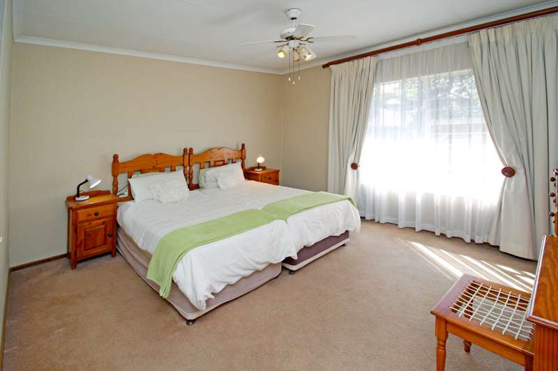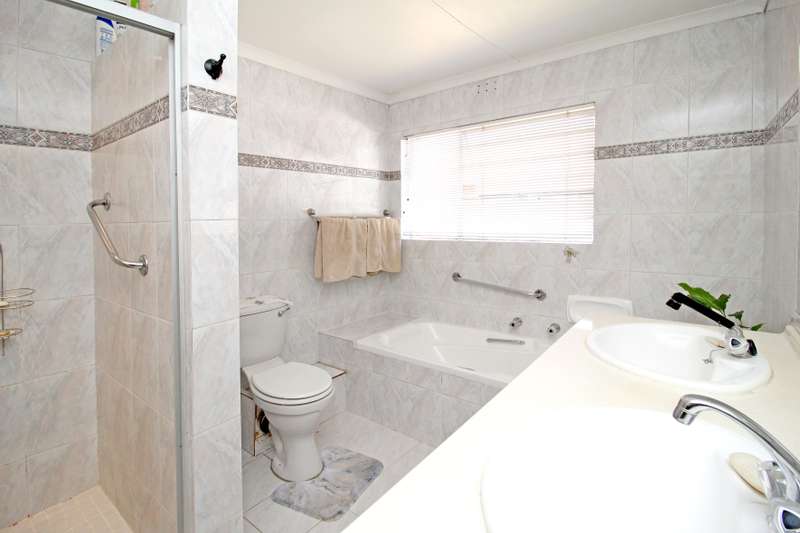 Mint condition, spacious 3 - bedroom cluster. Close to Shuls and shops. Great bonus - very low levies and low maintenance complex. 3 Bathrooms (2 en suite), extra-large main bedroom en suite and dressing room with wall-to-wall cupboards. Guest Toilet. Open plan lounge and dining room opening through glass sliders to gorgeous, private patio, beautiful manicured garden and pool area. Separate warm family room with laminate flooring. Fashionable bright and light kitchen with gas hob and separate scullery. Staff accommodation. Double garage with house access. Inverter.