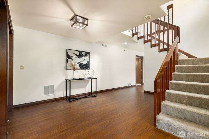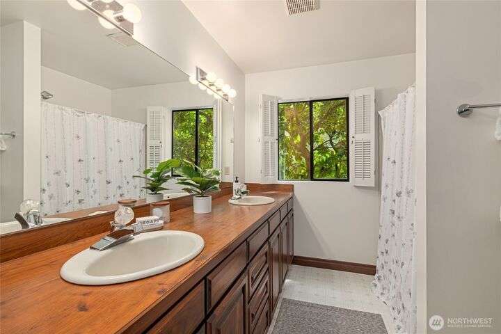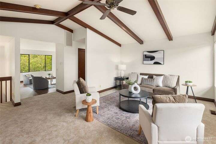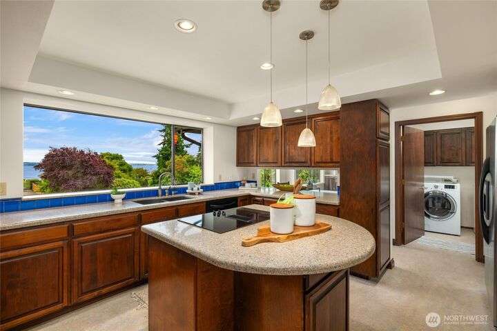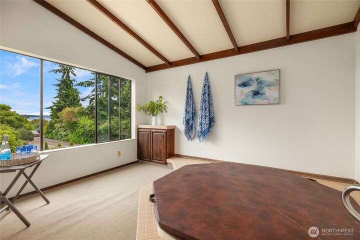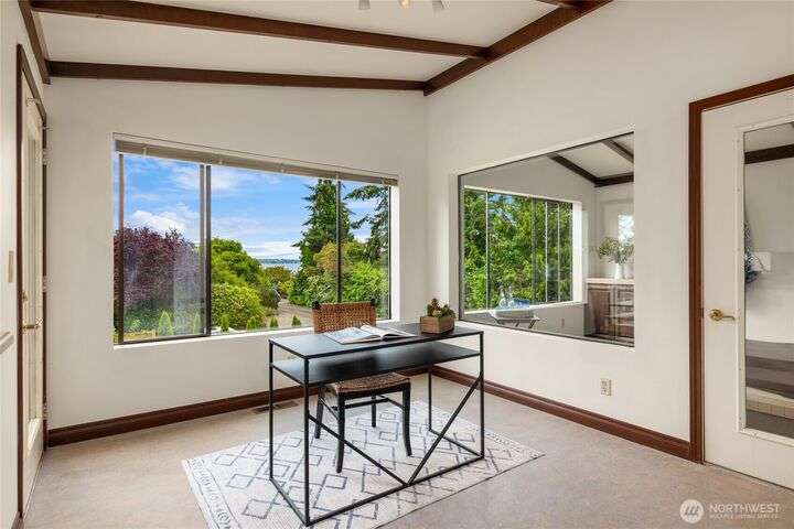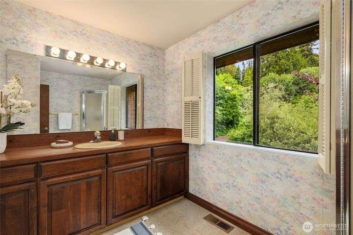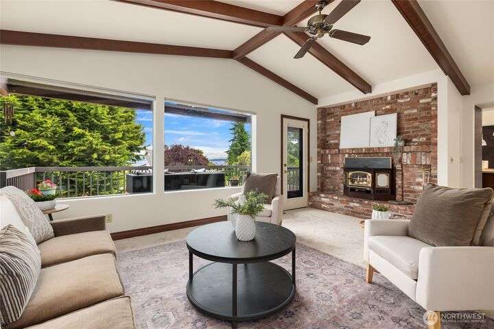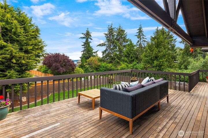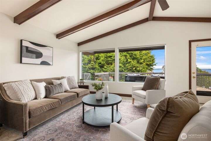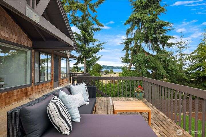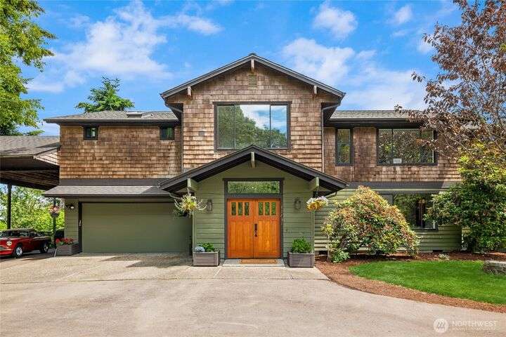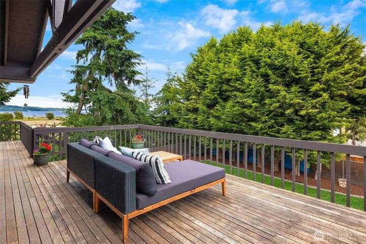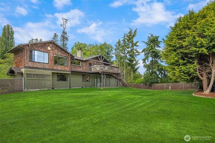 Come embrace the beach lifestyle and turn this stately and very solid house into your dream home. This home features primary living areas on the upper floor, maximizing the partial views of Puget Sound and marine traffic from the most lived in areas of the house. Spacious room sizes provide options for various lifestyles. Just through your private gate access the abundant amenities of beautiful Fay Bainbridge Park. A fully fenced backyard is perfect for gardening, lawn games, and your furry friends. Yes, this property is a bit dated but bubbling over with potential and opportunity for a fortunate buyer with vision. An oversize two car garage has deep bays, storage, and a sizable shop area. The covered RV carport has power hookup.