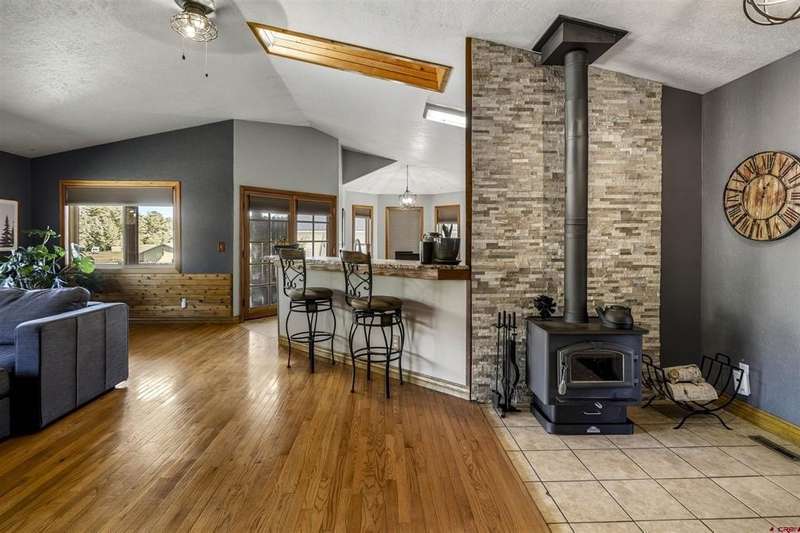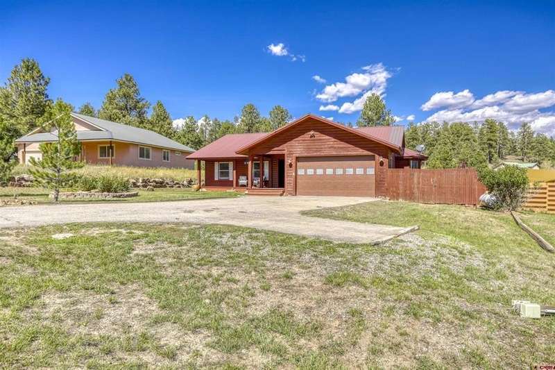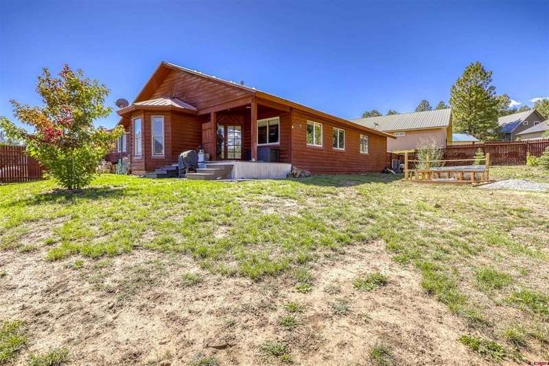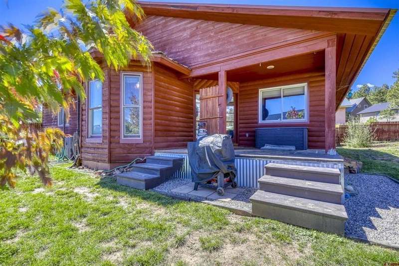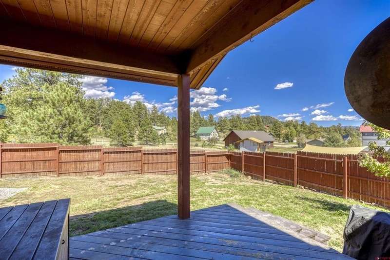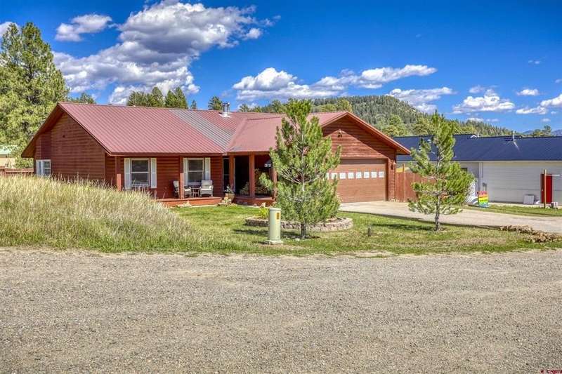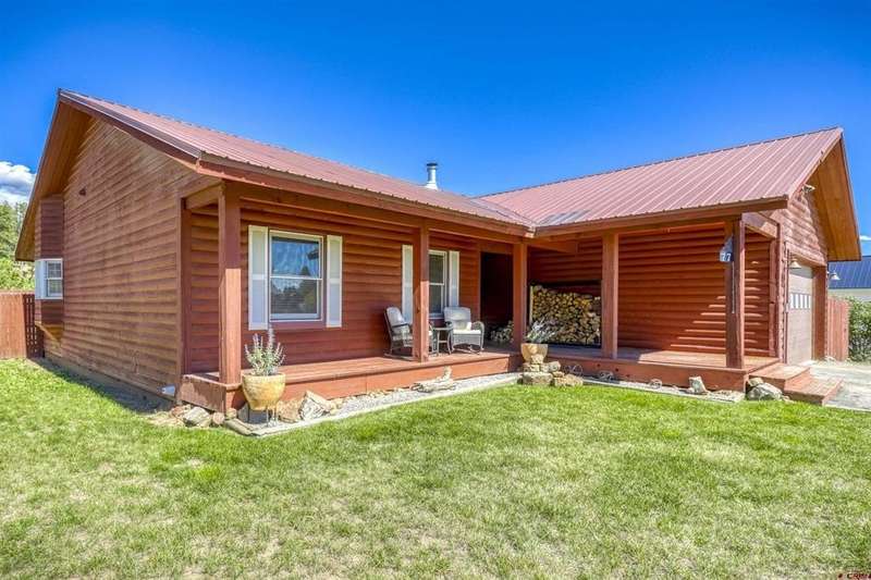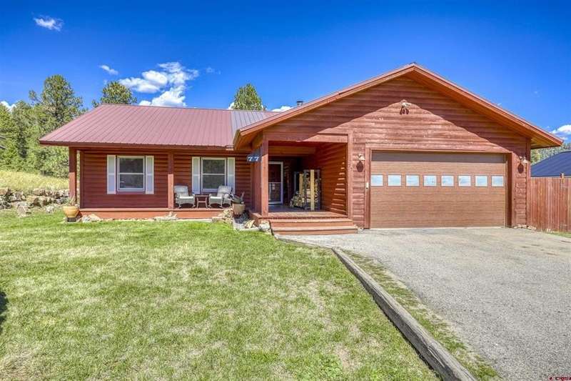Juli Morelock, Galles Properties, C: 970-946-2137, juli@gallesproperties.com, https://julimorelock.com: Welcome to 77 Flintlock Drive! This charming single-level home offers 1,635 square feet with 3 bedrooms and 2 bathrooms, all set on a .25 acre lot with a huge fenced backyard and mountain views. Inside, you’ll find solid oak hardwood floors flowing through the living room, hallway, and bedrooms, accented by a cozy woodstove with a stacked rock wall for both warmth and mountain-style character. The woodstove location makes it very convenient for bringing in firewood off the covered porch. The kitchen features granite countertops, stainless steel appliances, and tile flooring, with a sunny dining nook just off to the side.The spacious primary suite includes a beautifully finished bathroom with a custom tile design, walk-in shower, and a relaxing clawfoot soaking tub. Recently painted interior and new fixtures, the home also has an attached 2 car garage and plenty of outdoor parking for a large RV. Outdoor enthusiasts will love the location: just a short distance from a National Forest access gate for hiking, mountain biking, and running, plus nearby Lake Hatcher for fishing, kayaking, and paddleboarding. This home combines comfort, convenience, and adventure in one package.
