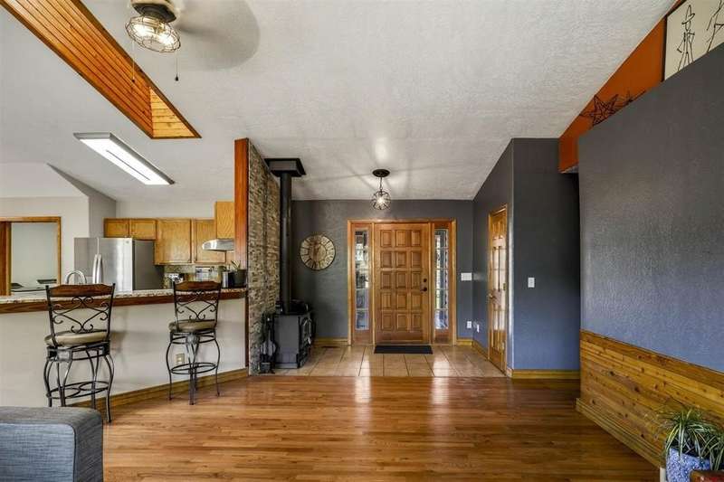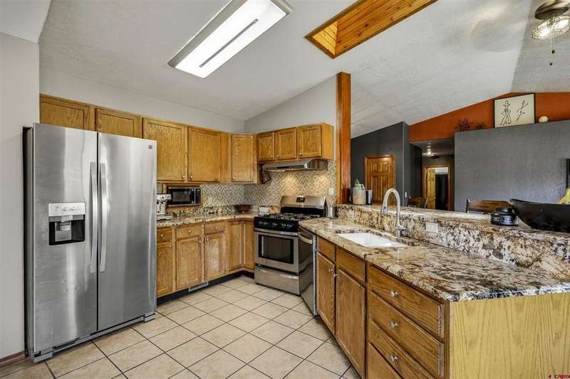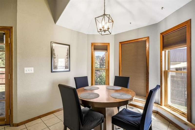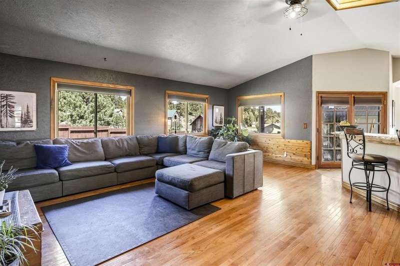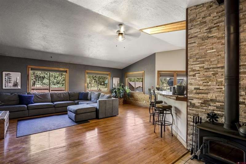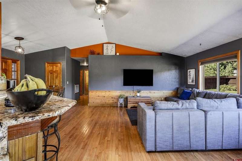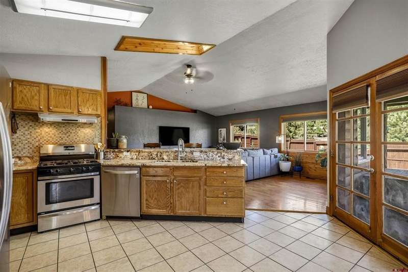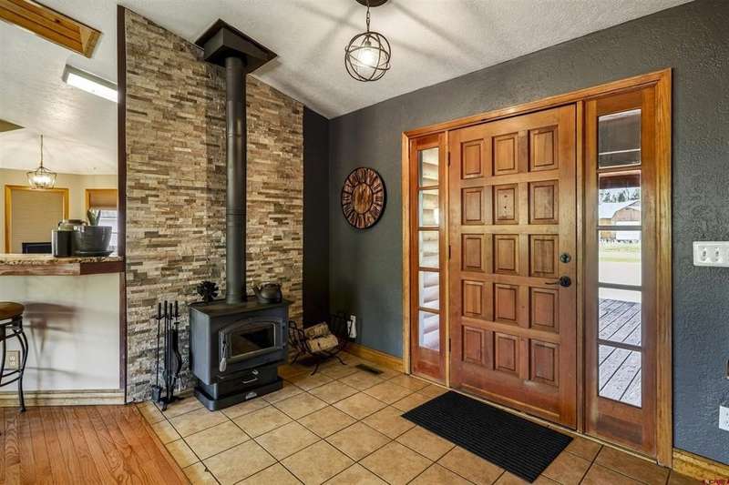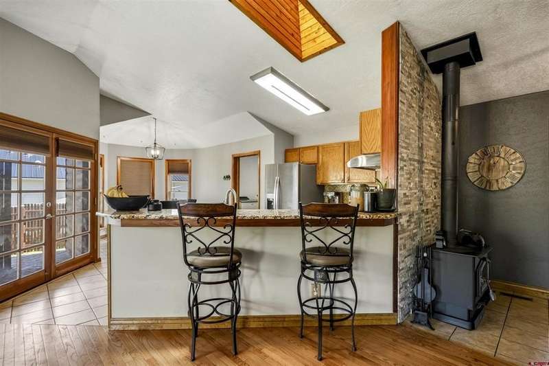 Juli Morelock, Galles Properties, C: 970-946-2137, juli@gallesproperties.com, https://julimorelock.com: Welcome to 77 Flintlock Drive! This charming single-level home offers 1,635 square feet with 3 bedrooms and 2 bathrooms, all set on a .25 acre lot with a huge fenced backyard and mountain views. Inside, you’ll find solid oak hardwood floors flowing through the living room, hallway, and bedrooms, accented by a cozy woodstove with a stacked rock wall for both warmth and mountain-style character. The woodstove location makes it very convenient for bringing in firewood off the covered porch. The kitchen features granite countertops, stainless steel appliances, and tile flooring, with a sunny dining nook just off to the side.The spacious primary suite includes a beautifully finished bathroom with a custom tile design, walk-in shower, and a relaxing clawfoot soaking tub. Recently painted interior and new fixtures, the home also has an attached 2 car garage and plenty of outdoor parking for a large RV. Outdoor enthusiasts will love the location: just a short distance from a National Forest access gate for hiking, mountain biking, and running, plus nearby Lake Hatcher for fishing, kayaking, and paddleboarding. This home combines comfort, convenience, and adventure in one package.