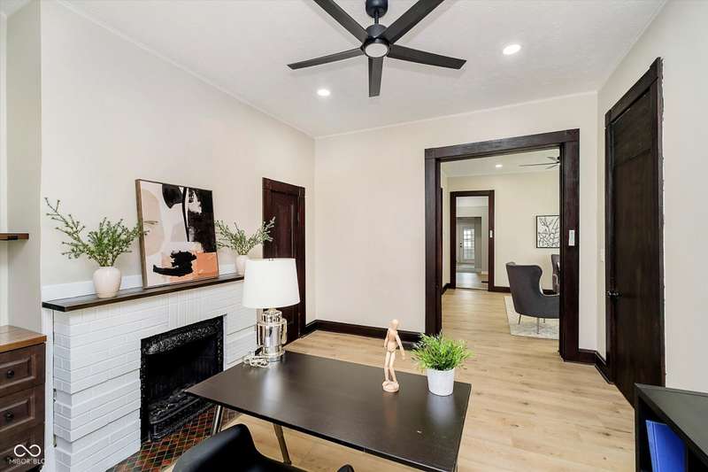 Welcome home to many updates in the heart of Fountain Square! Steps from ALL the fun! Boasting 3 bedrooms and 2 full bathrooms, offering a desirably rare primary suite with HUGE walk-in closet, attached full bathroom, plus an additional room that could be used for endless opportunities- office, home gym, crafting, reading- you name it! Upon entry, you'll be greeted with perfect separation, and an option to proceed into the large living room or charming office/bedroom- amazing flexibility for a dream office or spacious guest bedroom, including an original pocket door and fireplace! Quaint 3rd bedroom offers the perfect extra space. Beautiful new kitchen includes stainless steel appliances, quartz countertops, shaker cabinets, and trending backsplash. Storage shed out back offers ideal outdoor storage, and partial unfinished basement offers plenty of extra storage space. Off street parking off the alley is a pleasant bonus, as well as the fully-fenced backyard. Attractive price point, location, and updates will make this "THE ONE!"
