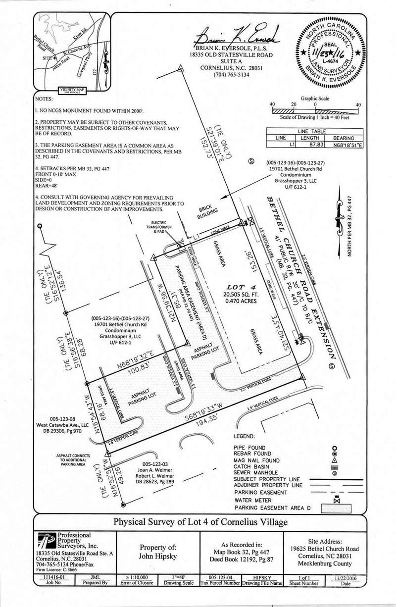 Well maintained, free standing commercial building with excess land for potential expansion. High ceilings, abundant parking and separate men's and women's bathrooms. Village Center zoning is a mixed-use district allowing a multitude of retail, commercial, office and services. Set on Bethel Church Road in Cornelius, NC, 1 block south of Cornelius Road 1 +/- from I-77. Owner will consider sale leaseback. Cornelius, NC is a bedroom suburb of Charlotte with a 1 mile average household income of $170,368 and average house value of $837,167. Catawba Avenue in the vicinity of Bethel Church Road is 25,000 +/- VPD.