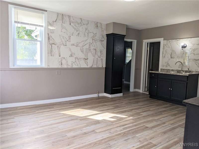 Completely renovated single family home in Black Rock makes moving a breeze! New flooring throughout, including top of the line, waterproof flooring in the kitchen. New kitchen sink, countertop, cabinets, backsplash. Everything is brand new in the bathroom. The entire home has been freshly painted from top to bottom. New storm doors, interior doors, & exterior doors. New lighting fixtures & window blinds. Some new windows, PEX plumbing, & drywall. Additional features include: two bonus rooms on the second floor; very generously sized primary bedroom; separate dining room; two large closets in the upstairs hallway for additional storage; enclosed side foyer (great for Buffalo winters); laundry hook-ups in the huge first floor utility room with an exterior access door to the fully fenced yard; low maintenance vinyl siding. Well situated & conveniently located minutes from Downtown Buffalo, close to numerous parks, the waterfront, restaurants, shops I-190, & Rt. 198. Open house Saturday, September 27th & Sunday, September 28th from 11am-1pm.