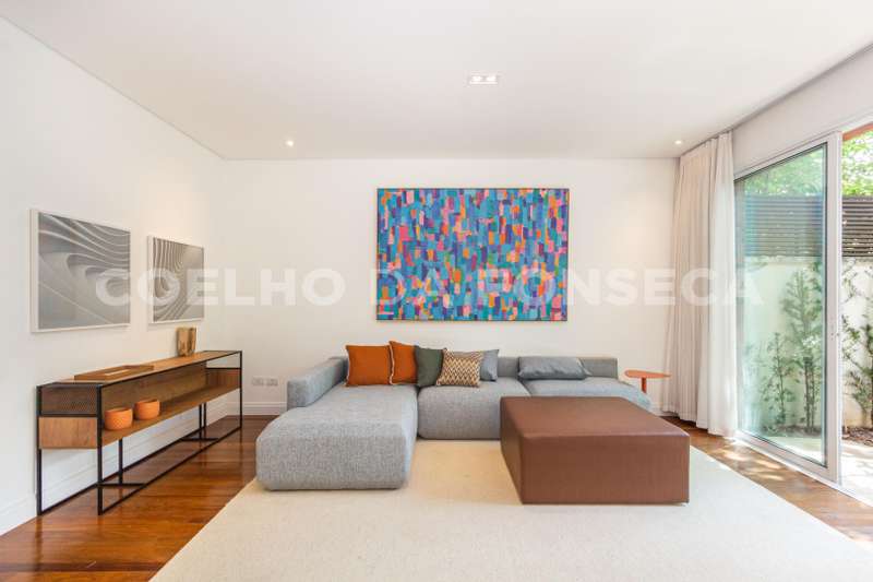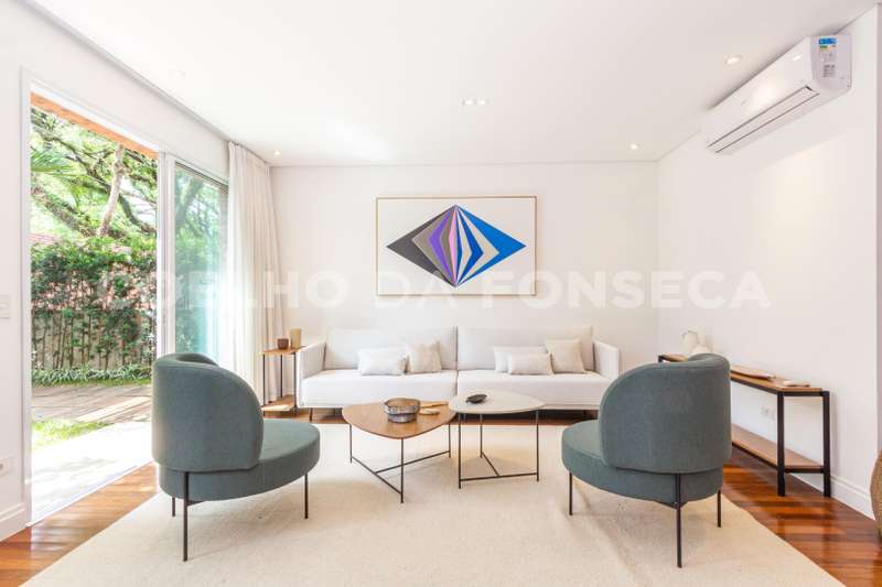 Living com acesso ao jardim , sala de jantar e de almoço.