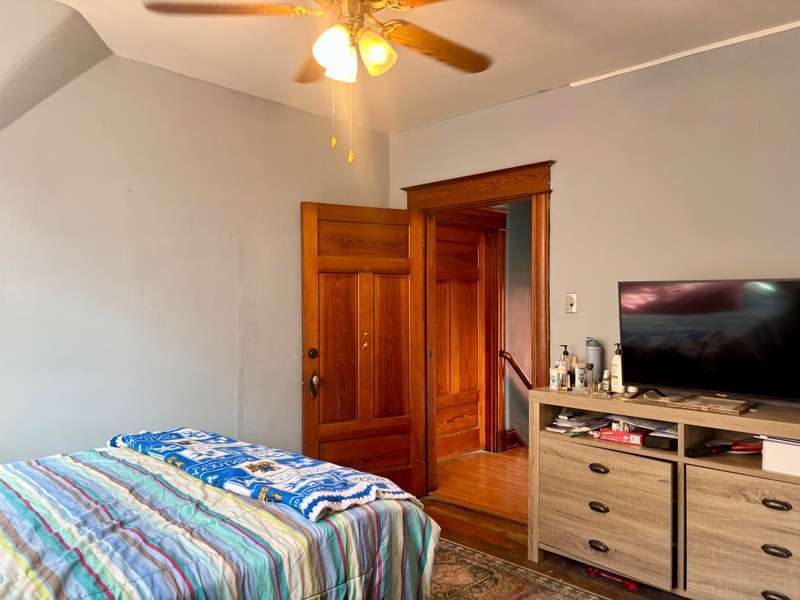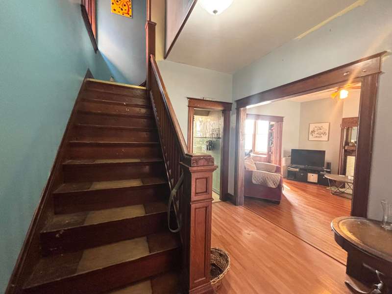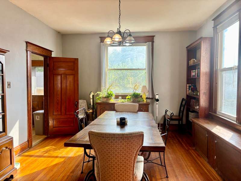 Charming 3-bedroom home featuring spacious rooms, hardwood floors and natural woodwork throughout. Enjoy relaxing on the front porch or a bbq in the fenced backyard. Inside, pocket doors separate the spacious living and dining rooms. The basement offers walk-out access and has great potential to be finished again for added living space. A detached garage off the alley provides extra storage.