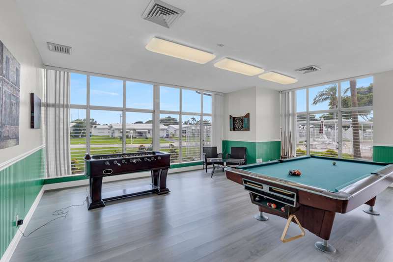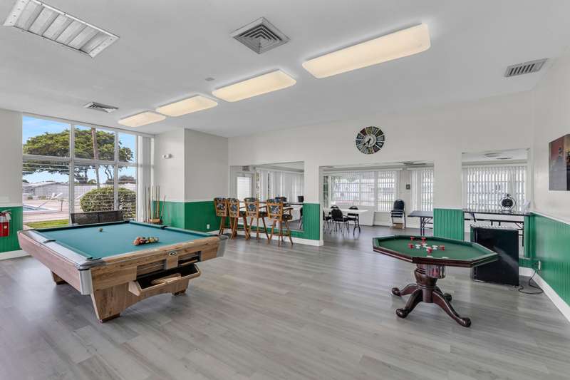 Beautiful views in Pompano Beach Private Golf Community Condo 1 Bedroom/1 Bath overlooking 4th hole of Leisureville Private Golf Course. NO LAND LEASE! Condo Roof 2009, A/C 2008, HWH 2008, Tile Floors Furniture negotiable. FREE RESIDENT GOLF on this 9 hole par 3 golf course. Low Condo/HOA fee includes scheduled lawn mowing, 2 pools, billiards, ping pong, shuffle boaard, and activities. Minutes to Pompano, Deerfield, Lauderdale by the Sea Beaches, Casino, Horse Racing, I95, Turnpike, Sawgrass EXP , upscale restaurants. Mandatory 700 Credit Score, 55+ Verified Community. Washer/Dryer does NOT CONVEY.
