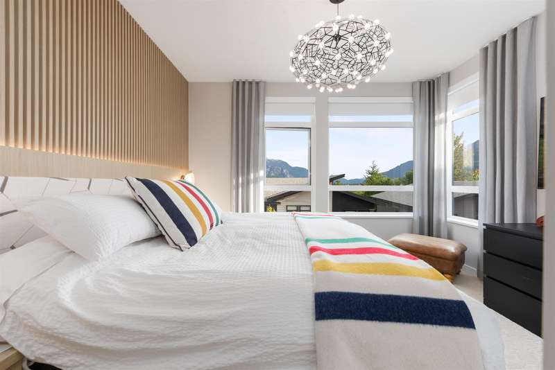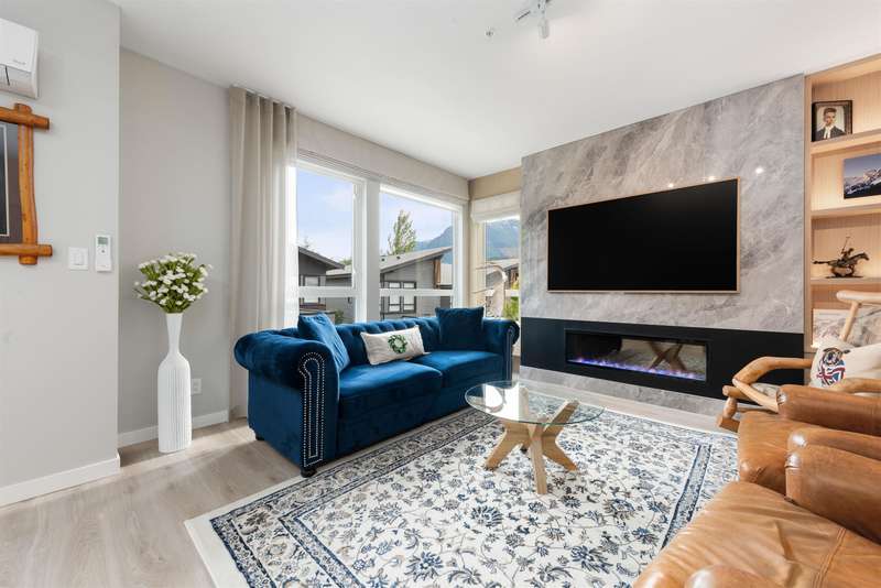 Modern Mountain Living at Highline! A newly built stylish 3 bed, 2.5 bath end-unit townhome offers 1,532sqft across three bright, functional levels. Open-concept living & kitchen w/ ~9ft island, large windows showcase views & flood the home w/ natural light. Dbl garage w/ Clever Quarters storage system & EV charger—room for parking & gear. Add’l upgrades incl. heat pump w/ A/C, floating wine rack, premium elec fireplace, accent walls, & built-ins throughout. Step out from living floor to a sun-filled, fenced patio & yard—relax or entertain. A fantastic location at Garibaldi Springs community w/ 90+ acres of protected greenspace & trails lead to Jack’s Trail & Alice Lake. Moments to Squamish Montessori. This home has it all—location, style, comfort & adventure! https://www.youtube.com/watch