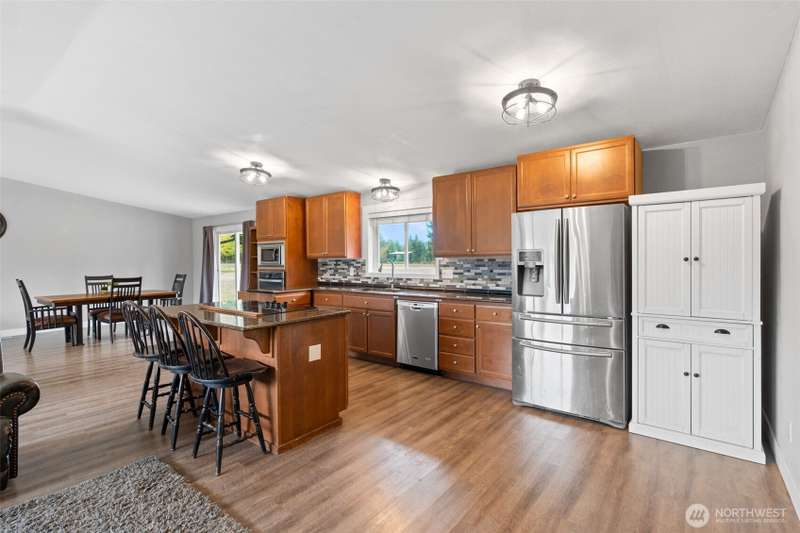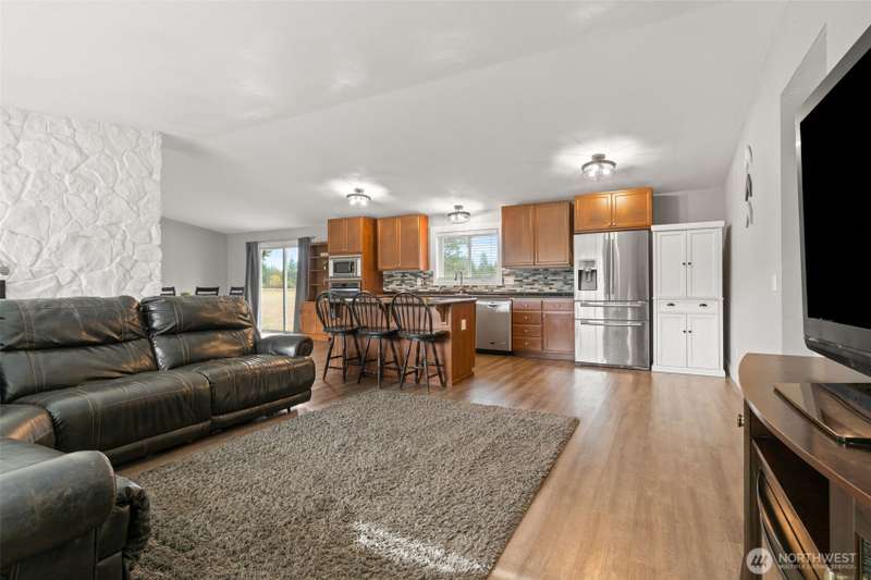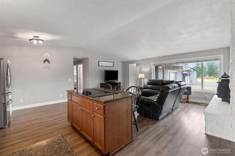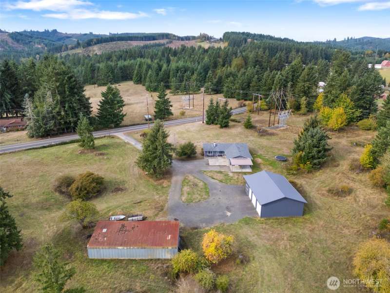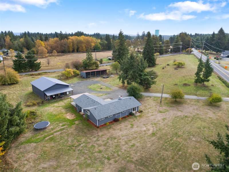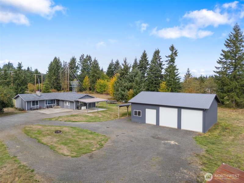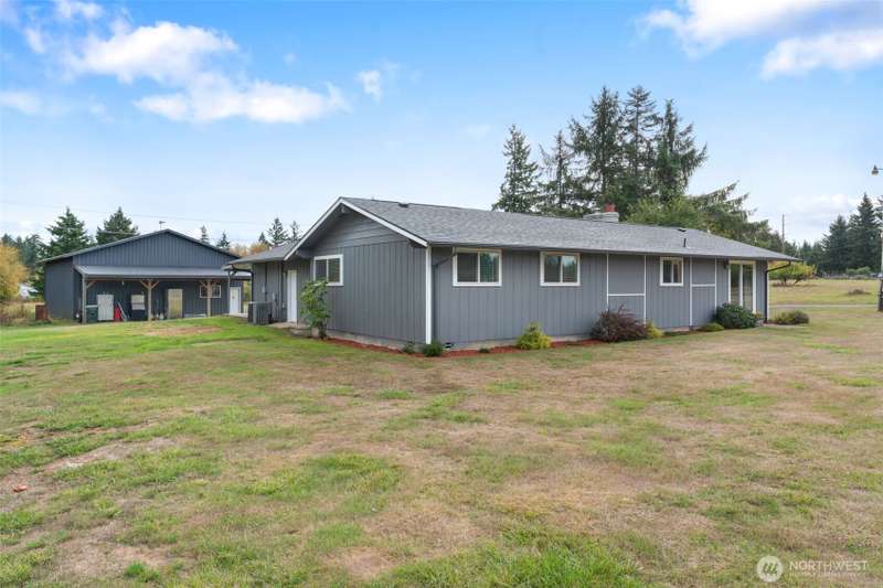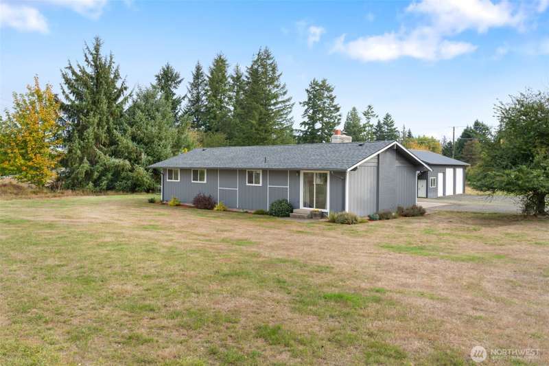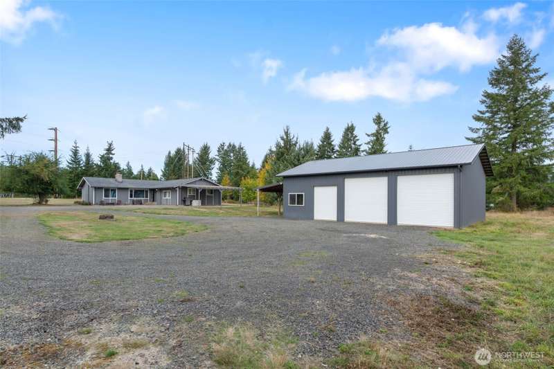 Charming country rambler on nearly 7 acres! This 3-bed, 2-bath home offers both comfort and versatility with an open living room, spacious family room, and a converted garage turned rec room. Stay comfortable year-round with a heat pump and fireplace perfect for cozy evenings. Outside, enjoy a massive 36x48 shop, 5-stall machine shed currently used as batting cages, 2 carports and an abundance of fruit trees. Wired for hot tub. Country living just minutes to town. Room to work, play, and grow—your peaceful retreat with space for all your hobbies and dreams!