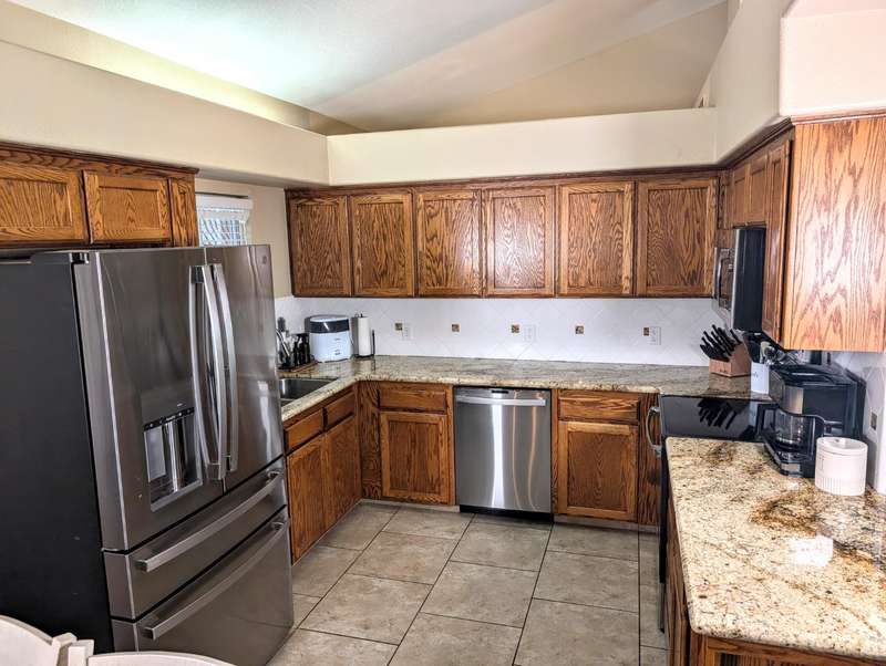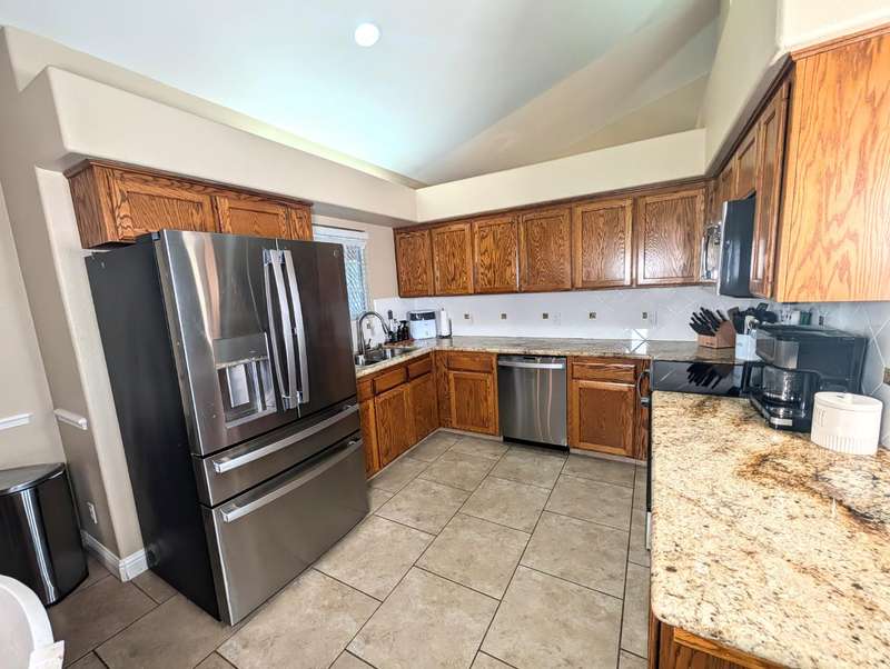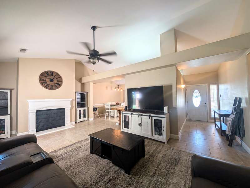 Wonderfully kept home with granite in the kitchen, living room has cathedral ceilings and fireplace for those cosy evenings, 3 nice sized bedrooms and all in the Clovis School district in Cedarwood elementary, plus a playground just around the corner. The master bath has been remodeled and has a large shower, a large walk-in closet and skylight. The backyard has 2 patios and lots of space for entertaining or play year for children. Home has an owned water softener, 2 car garage,potential room for RV parking on the side yard. Attic has plywood for storage, plus tall cabinets inthe garage, and a shed in the backyard. This is a great home in a fantastic neighborhood.Call for appointment today. Need at least a 2 hour notice for tenant can remove dogs for showing.