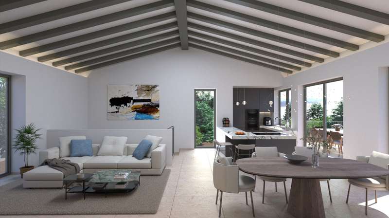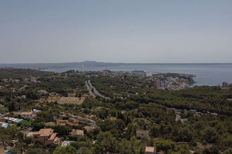Located on a tranquil hillside street, this property offers sweeping views over Palma Bay. The building license has been submitted and is expected soon. The planned residence will feature two levels and approximately 131 m² of constructed area. The main floor will include an open-plan kitchen, living, and dining area with large windows and direct access to an 18 m² terrace. The lower level will offer three bedrooms and two bathrooms (one en suite), with access to the pool area and garden. Both floors are connected by an internal staircase and an external stairway to the terrace. A private parking space is also included. The price covers the existing property and the building license; renovation and construction costs are not included.