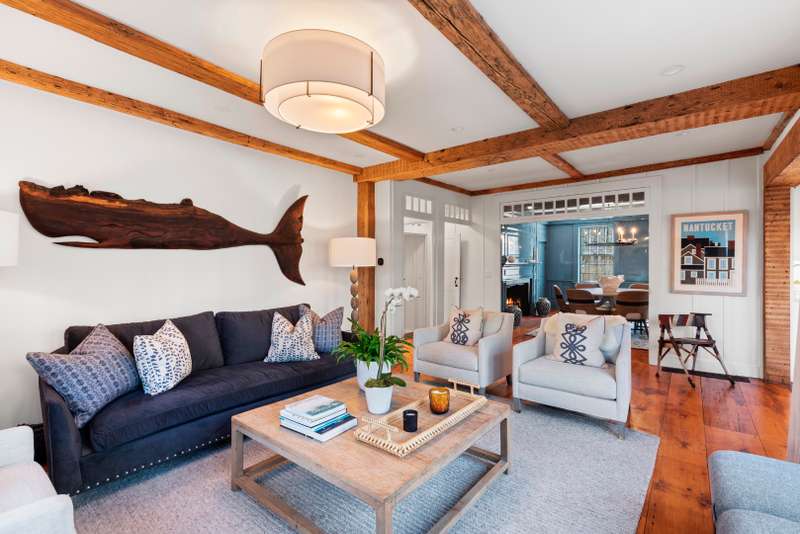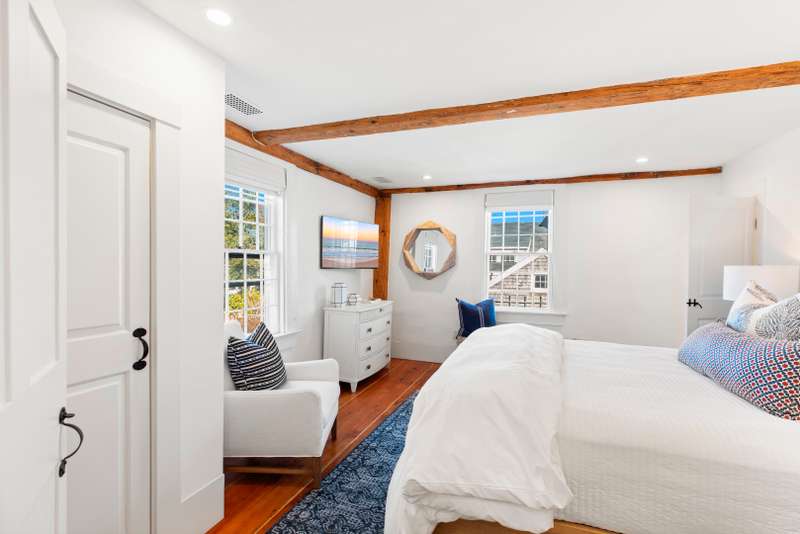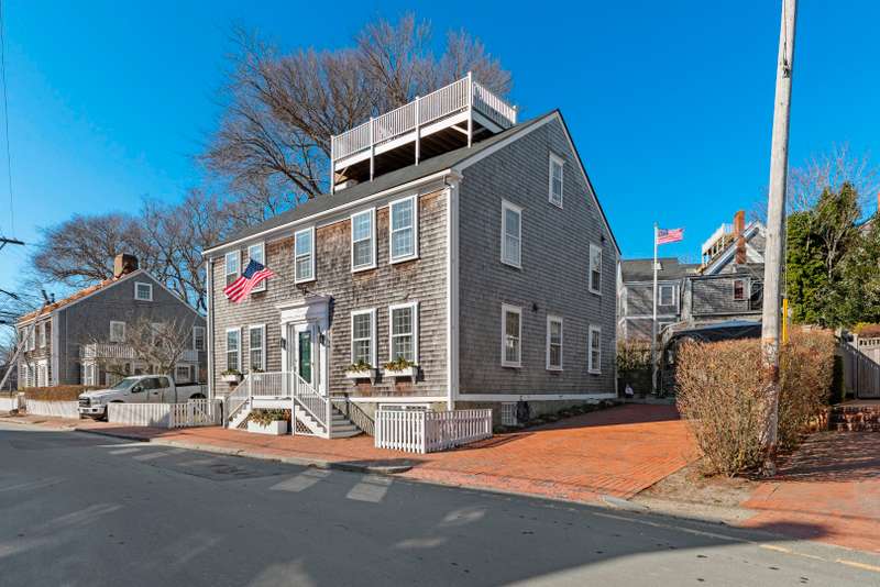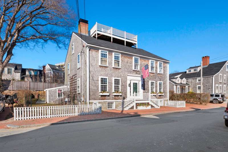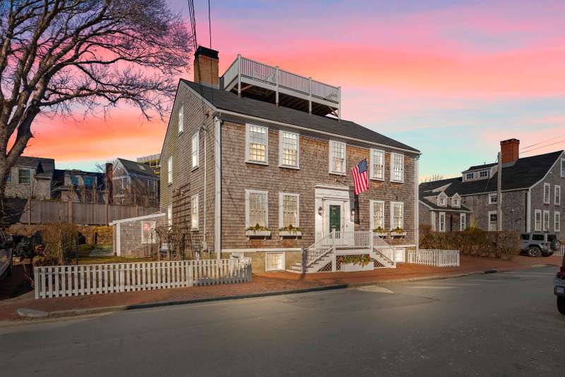One Chester Street is an exceptional residence that perfectly blends historic charm with modern luxury. Situated at the edge of Nantucket's historic district where the Cliff area meets Brant Point, this home offers a prime location that provides easy access to the best of island living. This 18th-century ship captain s home has been meticulously restored, preserving its original details, including five working fireplaces, while integrating contemporary amenities for today's lifestyle. Sold fully furnished with interior design by The Nantucket Looms, the home boasts four levels of living space, with six bedrooms and five and a half baths, it comfortably accommodates large groups, offering ample room for relaxation and privacy. The spacious open kitchen features the original 6' walk-in fireplace, breakfast area, adjoining a bright family/TV room that opens directly onto the rear deck, patio, and garden. The formal dining room features a beautiful lacquered finish. The outdoor space is eq