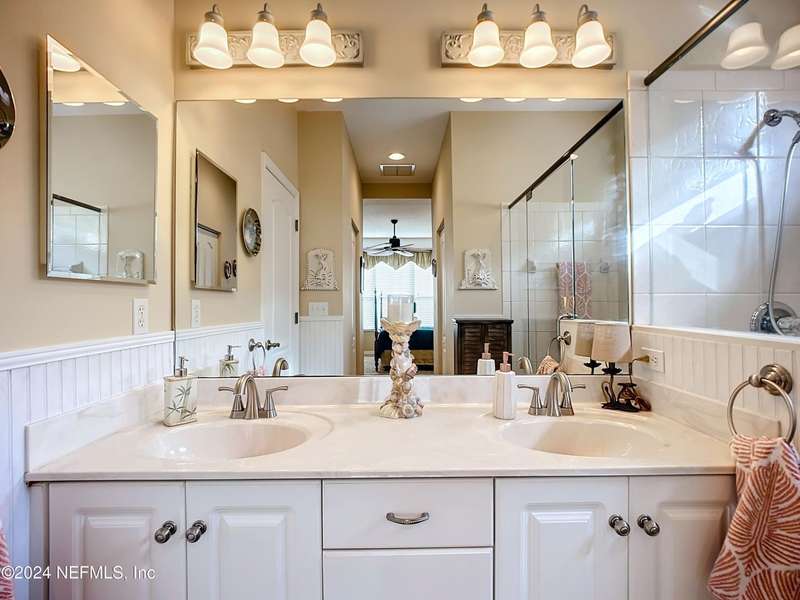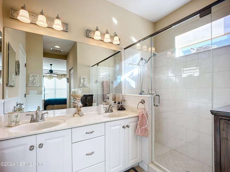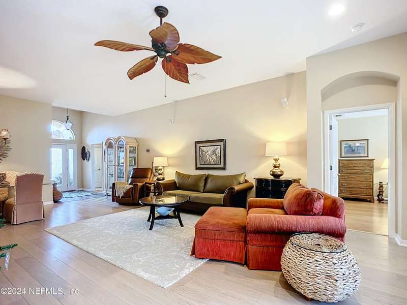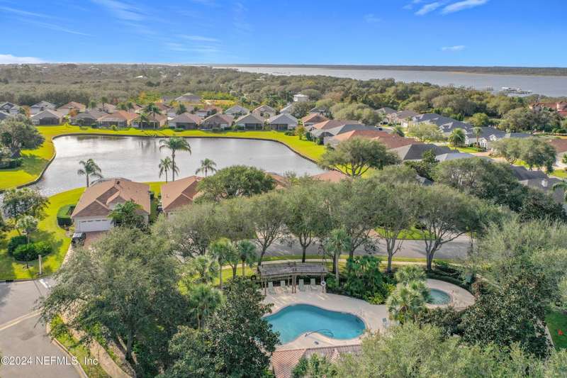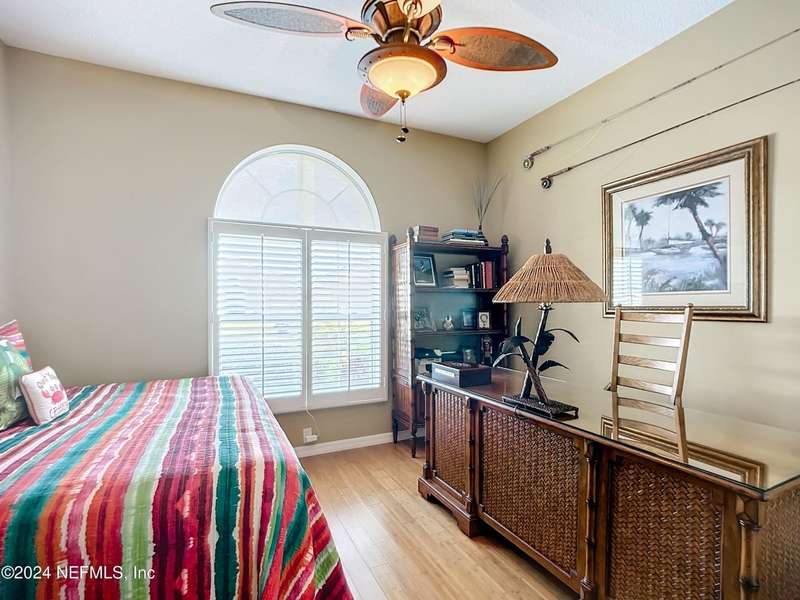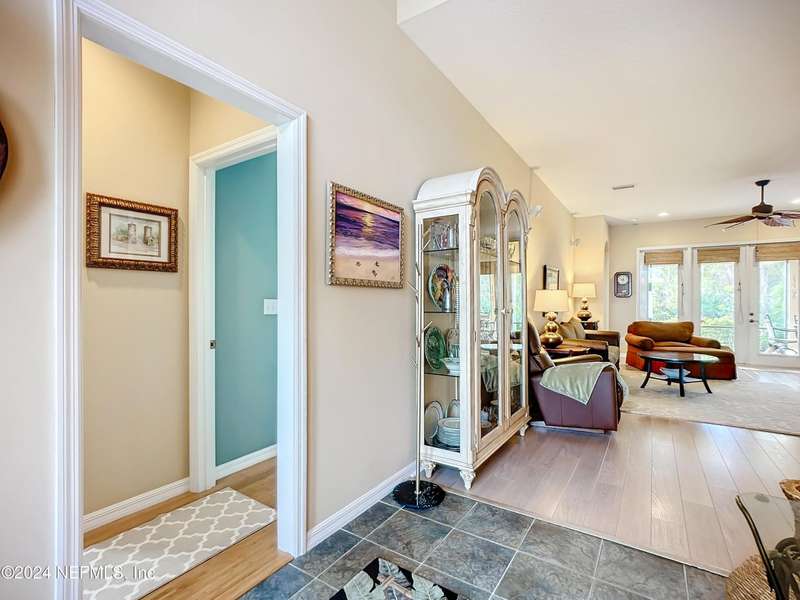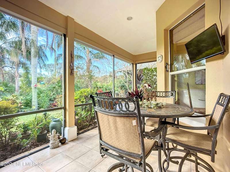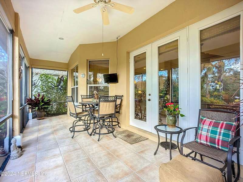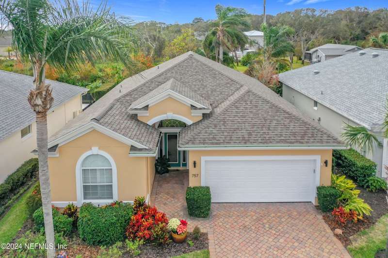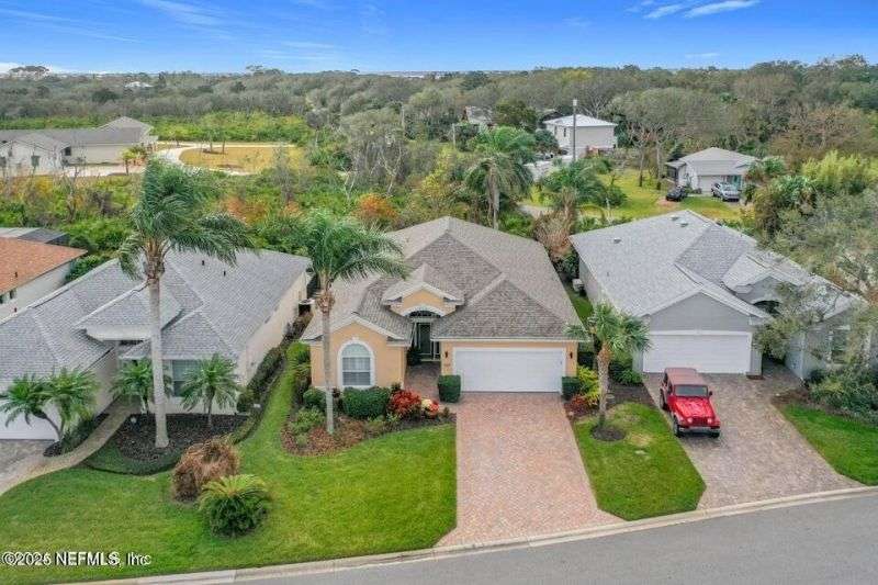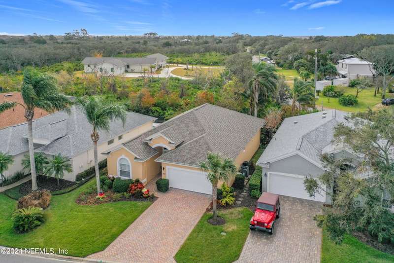 Are you ready to embrace the laid-back island lifestyle? This stunning home in the gated community of Ocean Palms is your perfect retreat! With a freshly painted exterior (November), inviting curb appeal, and a paver driveway, it's love at first sight. Inside, enjoy elegant travertine tile and farmhouse sink in the kitchen and bamboo floors in the primary and two bedrooms. Unwind in the spacious screened-in patio, where you can relax and take in the serene beauty of 60 acres of natural land right in your backyard, providing ultimate peace, privacy, and picturesque views. The garage is equipped with 3 roof racks for storage and a pulley system to store your kayak. Located on Anastasia Island, Ocean Palms offers incredible amenities, including a private dock on the Intracoastal Waterway, walking trails, a playground, and lawn care included in the HOA. Enjoy a 7-minute bike ride to the beach, easy access to top-rated schools, and proximity to historic downtown St. Augustine.