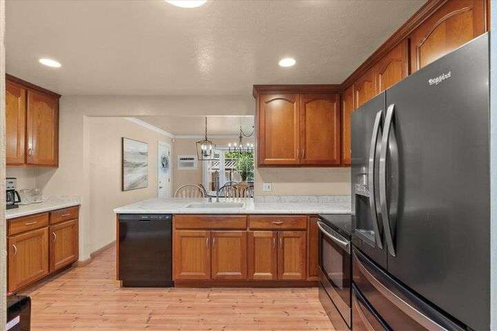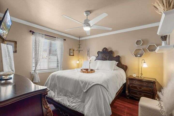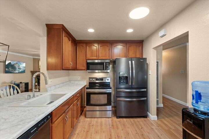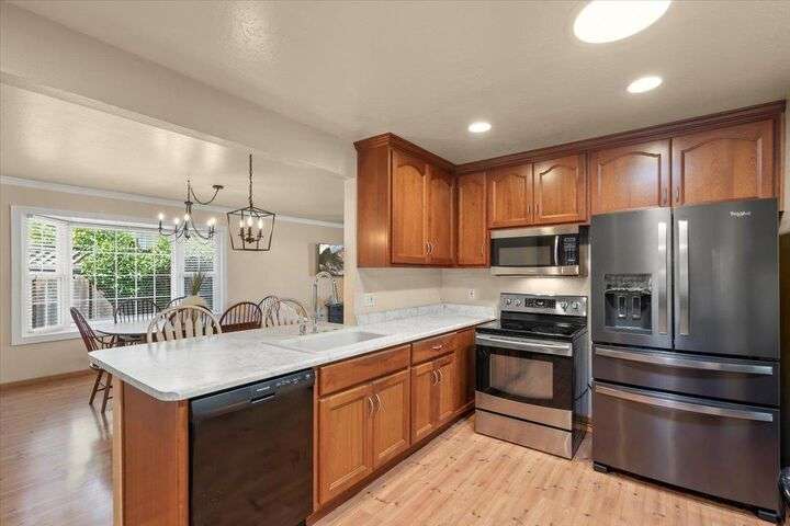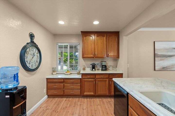 This beautifully maintained home features a bright, open kitchen with an abundance of rich wood cabinetry. The inviting floor plan includes two fireplaces and a spacious family roomperfect for entertaining. Additional highlights include dual-pane windows, large bay window, crown molding, and tastefully updated bathrooms. Step outside to the peaceful backyard, an ideal retreat for relaxing or hosting family and friends. Conveniently located near major highways, schools, shopping, and entertainment, this home offers the perfect blend of comfort and convenience.