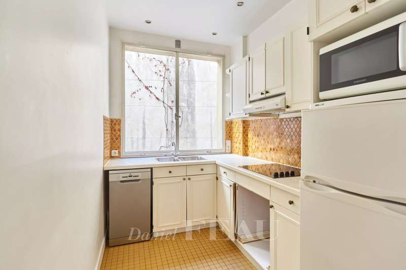 Avenue Georges Mandel / Trocadéro neighbourhood. This fully south-facing apartment offering 86.53 sqm of living space as defined by the Carrez Law is in the 3rd floor of a little mid 20th century co-ownership with a lift. Benefiting from a balcony enjoying a view of the Eiffel Tower, it includes a double living/reception room, a kitchen, two bedrooms, a shower room/wc, and a separate wc. Ample fitted storage space. Renovation is required, and it would be possible to create an open-plan kitchen and two suites.