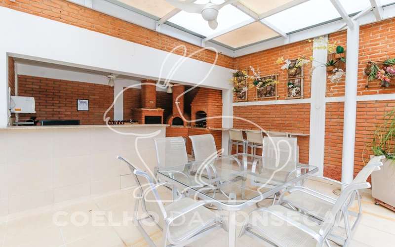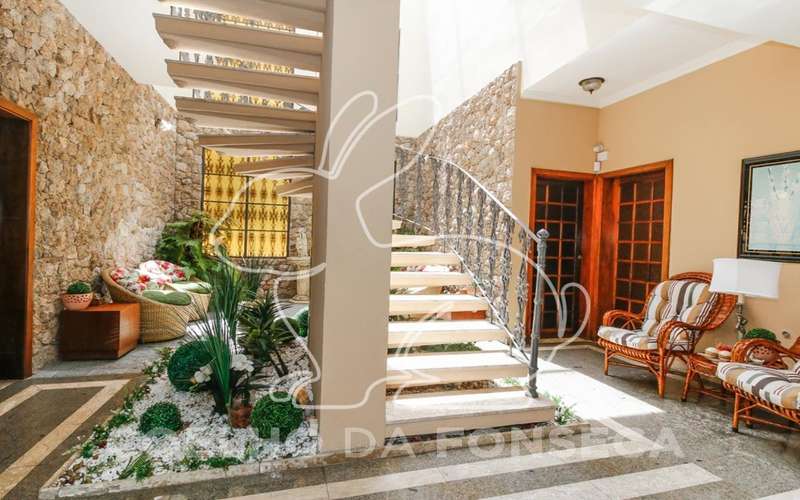 Belíssima e ampla casa assobradada em estilo americano, sala de estar, sala de jantar, salão para vários ambientes com bar, home Theater, sala de TV, jardim interno com teto de vidro, piso dos quartos em madeira, piscina com cascata e vaga para oito carros. Localizado em bairro residencial privilegiado. Bairro próximo a shoppings e colégios de renome.