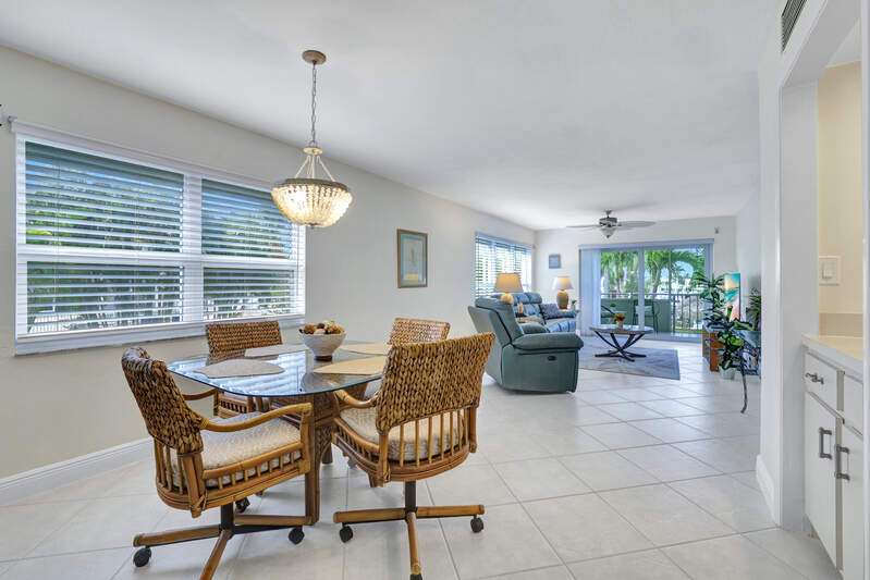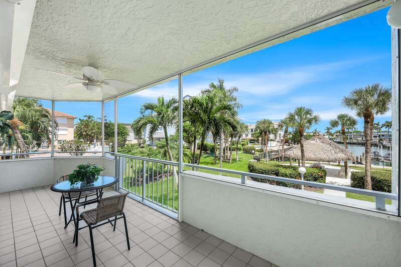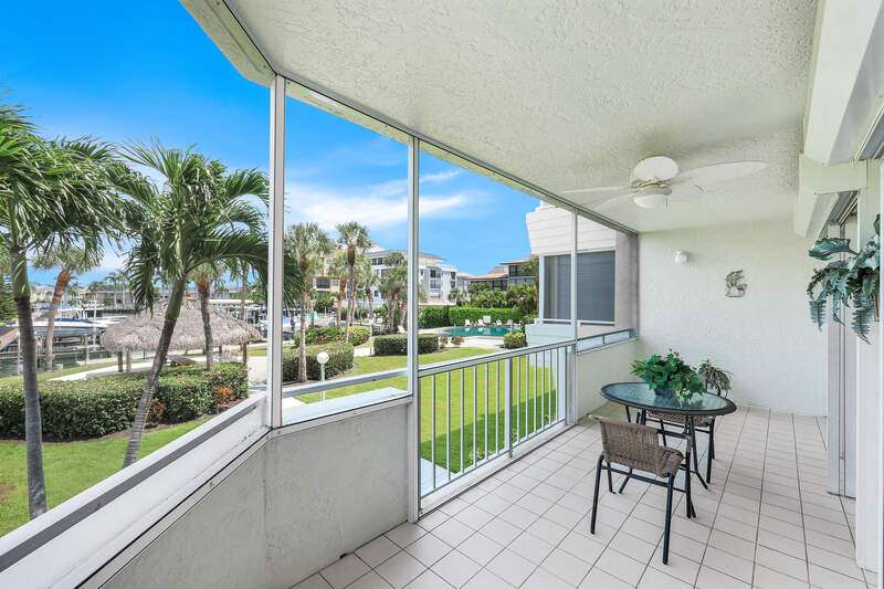 Enjoy serene canal views and close proximity to the beach from this light and airy 2-bedroom, 2-bathroom condo at the Moorings of Marco. Perfectly positioned at the end of a direct-access waterway, this residence offers the ultimate in island living-watch boats pass by from your oversized lanai while enjoying the tropical breeze. Inside, the open-concept layout features a spacious living area, impact-resistant windows and doors, neutral tile flooring, and an updated kitchen with granite countertops, stainless steel appliances, and ample cabinetry. The primary suite offers private lanai access, a walk-in closet, and a large en-suite bath with dual vanities. A full-size washer and dryer are included in-unit for added convenience. Community amenities include assigned covered parking, a sparkling pool, cabana area, bike storage, extra storage, car wash station, and more. Located just a short stroll to Caxambas Park & Marina and within a mile of dining and shopping, this is one of the best values for beach-area living on Marco Island. Whether you're seeking a vacation retreat, investment property, or full-time residence, this move-in ready condo is a must-see!