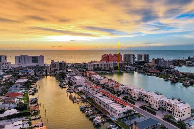 Live the waterfront lifestyle in this stunning, 3-story, pet-friendly townhome perfectly positioned on the Intracoastal Waterway in world-famous Clearwater Beach. With 3 bedrooms, 3 full bathrooms, 1 half bath, and rare features like WEEKLY rentals, a boat slip with 9000 lb. lift, private garage, elevator access to all floors, and a rooftop terrace with water views, this is not just a home — it’s a lifestyle; ideal for both full-time residents and savvy investors. Step inside to find a 2023 renovated chef’s kitchen with sleek quartz countertops, stainless steel appliances, and stylish finishes that flow seamlessly into the open-concept living space. Have peace of mind with recently updated HVACs and mini-split. Designed for comfort and coastal elegance, this home is ideal for entertaining or relaxing after a day on the water. The spacious primary suite is your private retreat, featuring a spa-like ensuite bath and walk-in closet. A ground-level bonus room opens directly to the resort-style heated community pool and your deep-water dock, blending indoor comfort with outdoor living. Take the private elevator to the rooftop terrace and experience panoramic views — sunrise over the Intracoastal, sunset over the Gulf. Whether you’re looking for a luxurious primary residence, vacation escape, or high-yield investment, this home offers it all — just steps from white-sand beaches, top-rated restaurants, and Clearwater Beach’s vibrant attractions.