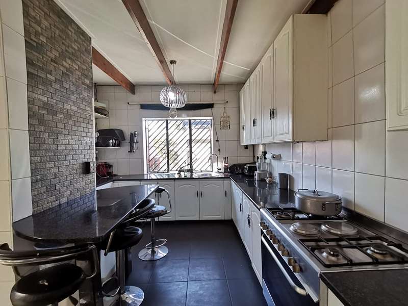 Welcome to this lovely home featuring 2 bedrooms with built in cupboards, including a main bedroom complete with a dressing room and en-suite bathroom, a second bathroom, and a separate guest toilet. The open-plan dining and living areas create a seamless environment for entertaining, centered around a old-school and genuine fireplace. Living areas lead out to the garden and pool area. An added bonus of a flatlet comprising of 1 bedroom with built in cupboards and 1 bathroom. This can be used for Granny or as an extra income potential. This home is complete with a tandem garage and good security. Situated close to main roads and amenities as well.