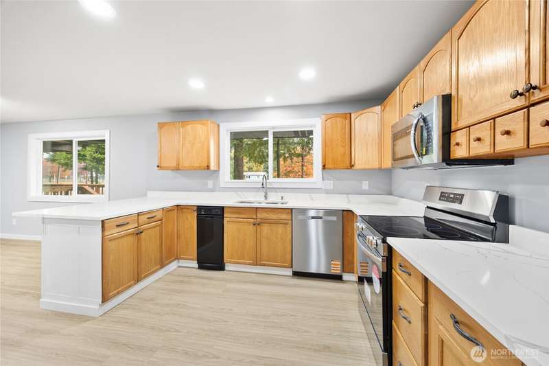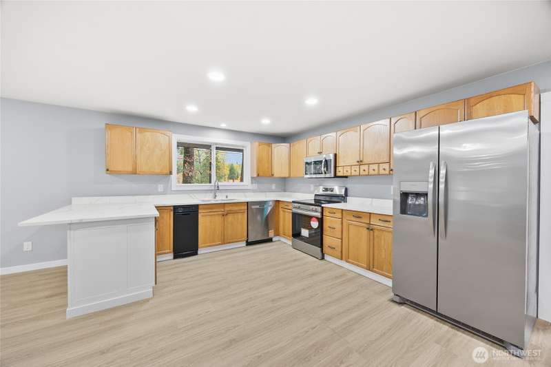 Discover your dream mountain retreat on a full acre of privacy surrounded by evergreens. This beautifully updated, move-in ready home features 5 bedrooms, 2.75 baths, and an open floor plan perfect for entertaining. The modern kitchen showcases quartz countertops, a designer backsplash, and stainless steel appliances. The main-level primary suite includes private deck access and a walk-in closet. Upstairs features three bedrooms and a bright loft ideal for a home office or play area. The finished basement offers space for a theater, gym, or guest suite. Enjoy multiple decks, a large backyard, RV/boat parking, and a 3-car garage. Peaceful and private, yet close to dining, trails, and adventure—welcome to your new home!