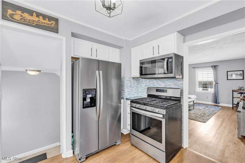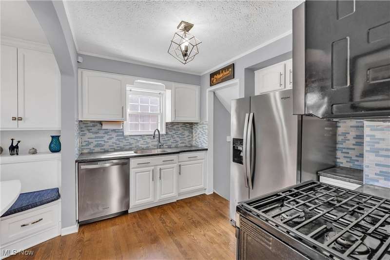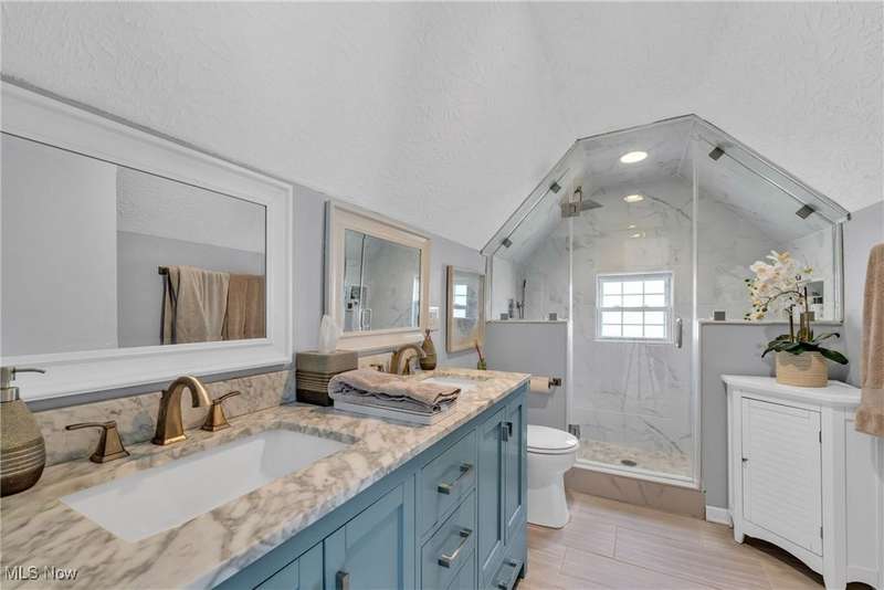 Welcome home to this gorgeous, updated cape in the heart of Bay Village! Step inside to discover the light-filled living room with stunning refinished hardwood flooring and large windows. Conveniently located off the living room is the sleek eat-in kitchen, complete with stainless steel appliances and fresh, neutral cabinetry! Hosting and entertaining is a breeze with a custom built-in breakfast nook and shelving, seamlessly combining function and style. Two generously-sized bedrooms on the first floor with a gorgeous renovated full bath offer a flexible footprint for guests, home office and more! Escape to the peaceful oasis of the renovated primary suite, encompassing the full second floor. The luxurious renovated primary bathroom with a double vanity, oversized shower and stylish tile is a rare gem. Ample closet space and storage leads to the oversized bedroom with a fresh, neutral palate and plenty of natural light. The recently updated basement with LVT flooring, a bar and a 3rd full bath is perfect for entertaining, play, additional office space, or all three! Laundry is conveniently located with plenty of storage. Enjoy the changing seasons in the enclosed patio, leading to the backyard retreat, complete with mature landscaping and a gorgeous gazebo. Located close to parks, playgrounds, shopping, and all that coveted Bay Village has to offer! Some updates include: paint, carpet, flooring, landscaping, gutters, garage roof, hot water tank and so more! A perfect blend of timeless charm and today's amenities, this adorable home will check everything on your list!
