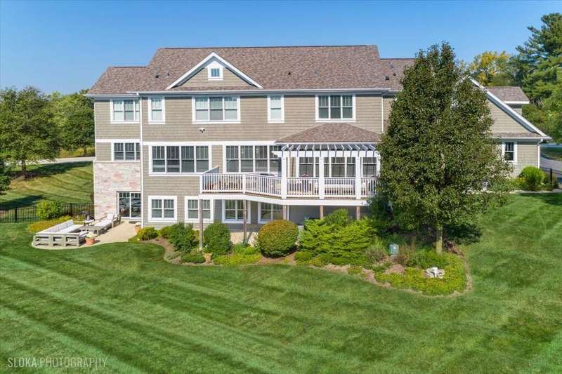 Luxury living meets timeless elegance in this exceptional residence! Set on a picturesque, nearly one-acre lot offering privacy and effortless access to Village amenities, this home exudes sophisticated charm from the moment you arrive. Meticulously maintained and extensively renovated, this home is truly turnkey-simply unpack and start living your best life. A gracious two-story foyer with balcony overlook welcomes you in, offering sightlines through arched entries to the light-filled great room and serene rear grounds. Soaring 9-foot ceilings on every level, rich hardwood flooring, stately columns, and exquisite millwork set an elegant tone throughout the home. The inviting great room is designed for both relaxed living and refined entertaining, featuring a cozy gas fireplace, custom wet bar, and multiple seating areas. Seamlessly connected is the stunning, newly renovated gourmet kitchen-a true showstopper-boasting custom Amish cabinetry, an upscale Thermador appliance suite, quartzite countertops, and an oversized island with breakfast bar. The adjacent breakfast room with built-in buffet and waterfall counter offers panoramic views and sliders to the expansive deck, ideal for morning coffee or alfresco dining. A private first-floor office provides the perfect work-from-home retreat, while the well-appointed laundry room with custom cubbies serves as an ideal family drop zone. A stylish powder room completes the main level. Upstairs, the luxurious primary suite impresses with vaulted ceilings, a double-door entry, a professionally organized walk-in closet, and a brand-new spa-inspired bath with dual vanities and an oversized glass-enclosed shower. Three additional bedrooms each offer walk-in closets; one enjoys a private ensuite, while the others share a beautiful Jack-and-Jill bath. Prepare to be wowed by the fully finished walk-out lower level, designed for ultimate versatility. Luxury vinyl flooring flows throughout the expansive space boasting a recreation room with fireplace, 5th bedroom with patio access, full kitchen, exercise and game rooms, full bath, and abundant storage-an ideal space for guests or in-law living. Outdoors, the private, fully fenced yard is perfect for both play and relaxation, featuring a sprawling lawn, deck, and patio. A heated three-car garage with built-in cabinetry and EV charging station completes this impressive offering. Additional updates include a new roof (2022). Enjoy the perfect blend of privacy and convenience with close proximity to Barrington Village, top-rated schools, shopping, dining, and Metra. This remarkable home truly has it all.
