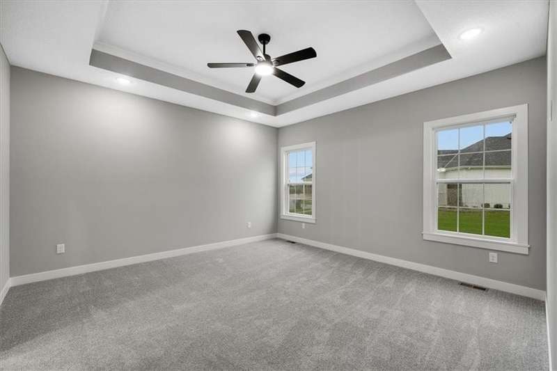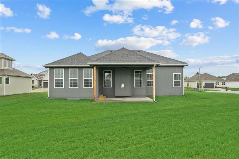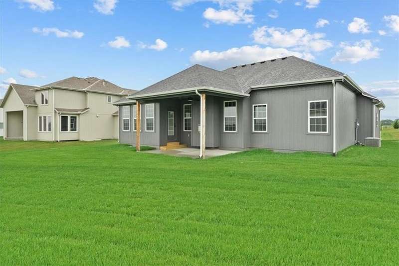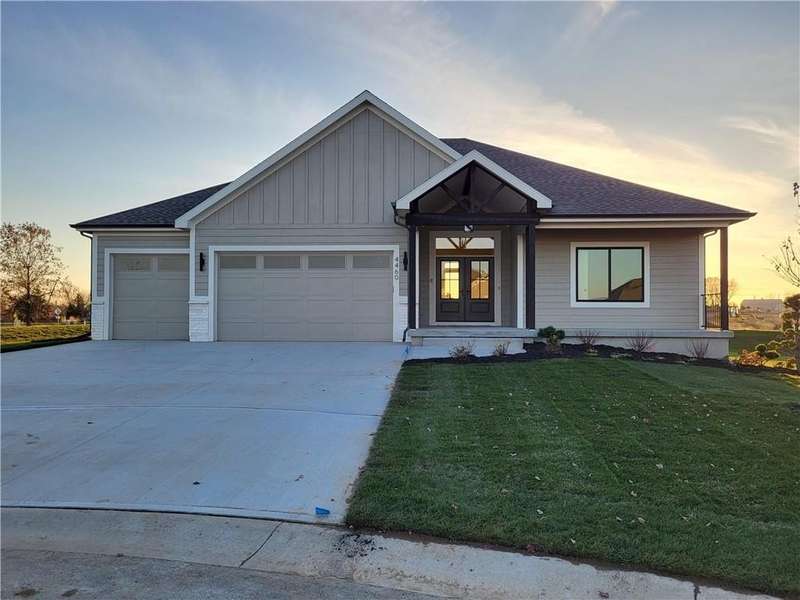 Lot 61 True Ranch Home built by Jim Perry Homes with a finished lower level. Estimated completion July 2026. Sits on a level corner cul-de-sac lot. PHOTOS OF A PREVIOUS MODEL. Three Bedrooms & 3 Baths on the main level! Sizeable Living Room has fireplace and opens to the Breakfast Area & Kitchen with an Island, gas cooktop. Main Bedroom has walk in shower, walk in closet. Lower Level with large Rec Room. 2 Bedrooms with walk in closets, Full Bath. 3 Car Garage. Sprinkler System. Enjoy golf course living in a great location, close to everything! Convenient highway access. Ten minutes to the Legends and 30 minutes to the airport and most other parts of the metro area and to Lawrence. Community pool, play and picnic area, tennis, basketball and pickleball courts. Area restaurant open to the public. Acclaimed Basehor-Linwood Schools!